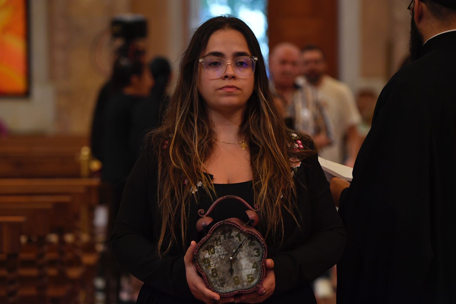أهالي ضحايا انفجار المرفأ في صلاة لراحة أنفسهم اليوم في كاتدرائيّة مار جرجس. (تصوير حسام شبارو).