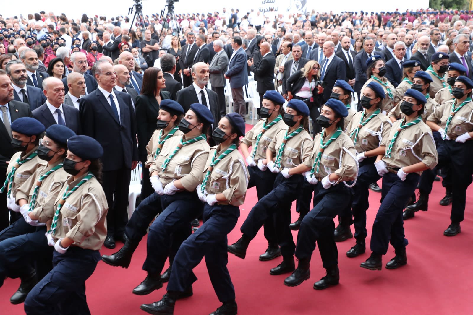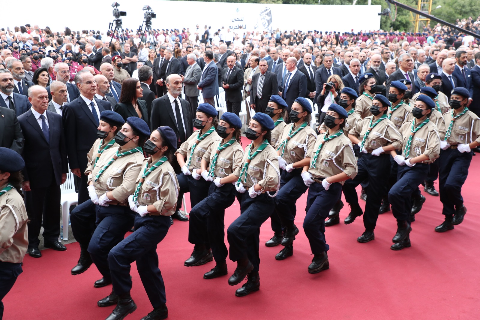 وكانت "كشافة الحرية" بدأت بمشهدية تحية لارواح شهداء "المقاومة اللبنانية" ليدخل بعدها أكثر من 100 كاهن من مختلف الرهبانيات والرعايا، وقدّمت كوادر من "القوات اللبنانية" البخور والقرابين. وتسلم جعجع مشعل "المقاومة اللبنانية" من الكشافة ووضعه على نصب الشهداء، تأكيدا على استمرارية المقاومة، وتزامنا ضرب عدد من المحازبين التحية للحكيم والشهداء ورُفعت السيوف.