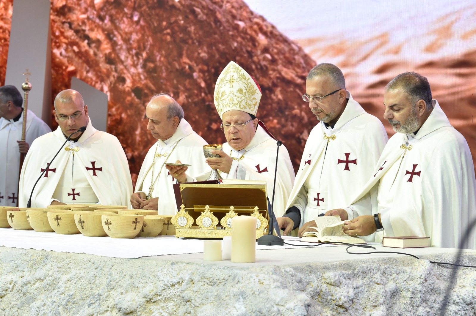 وعاون المطران العنداري الآباء وسام أبو ناصر، سليمان وهبة، شارل كساب وجورج العميل، وخدمت القداس جوقة "وتر" -زحلة برئاسة فادي نحاس، وتلا الرسالة عماد روكز فيما رفع الإعلامي بول عباس الصلاة عن نية الكنيسة، وقال: "الكنيسة أم، والأم تدرك كيفية الفصل بين الزؤان وحبة القمح التي تموت في الأرض وتنبت سنابل. مقاومتنا ولدت على نداء الأجراس "لما دق الخطر عالبواب". يا رب، ساعد كنيستنا بكل أغصانها كي تكون دائماً النور الذي يهدينا وتبقى أمينة على تراث القدّيسين والشهداء، وترفع الصوت المدوي: "لا تسكتوا عن الظلم والذل"".