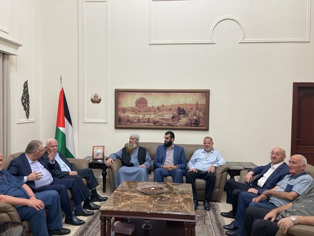 عزام الأحمد في اجتماع مع وفد من عصبة الأنصار في سفارة دولة فلسطين عن مخيم عين الحلوة.