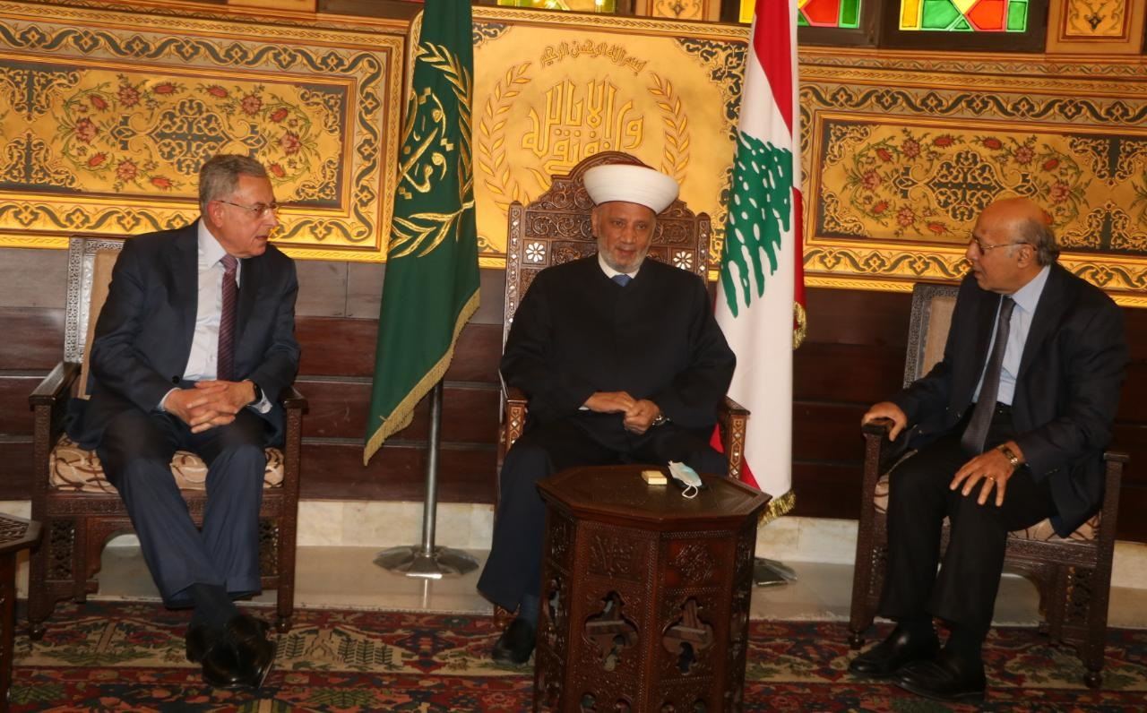 بعد اللّقاء، أشار السنيورة إلى أنه "كعادتنا نأتي بين الحين والأخر إلى هذه الدار الجامعة للمسلمين وللبنانيين للتشاور مع المفتي ولتبادل الأفكار معه في أحوال لبنان واللبنانيين التي تردت، ولا سيما بسبب ما آلت إليه أحوال لبنان ودولته. ومن ذلك ما جرى من إطباق وتسلط عليه وعليها من قبل الدويلات الطائفية والمذهبية والمليشياوية واللذين أسهما في هذا الانهيار الكبير الحاصل في الأوضاع الوطنية والسياسية والاقتصادية والمالية والنقدية والمعيشية، والتي يئن منها اللبنانيون، والتي أوصلتهم إلى حدود انعدام الثقة بالمستقبل، والتي كان أحد أوجهها ما يشهده اللبنانيون من قوارب الموت التي يستقلها البؤساء من اللبنانيين وغير اللبنانيين أملاً في الخروج من الجحيم اللبناني لتبتلعهم أمواج البحر".