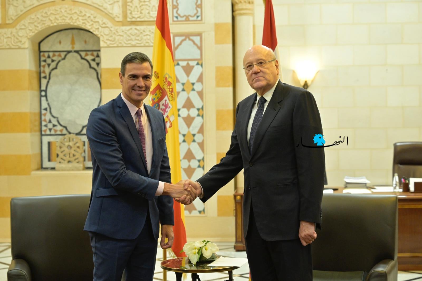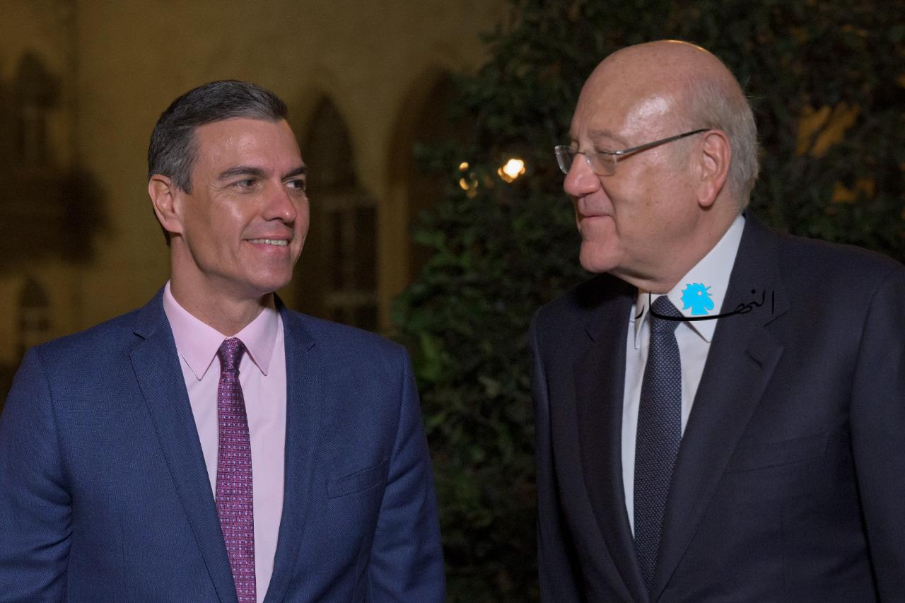 ميقاتي مستقبلاً نظيره الإسباني سانشيز: ملتزمون بالقرار 1701 وسوريا باتت آمنة للعودة