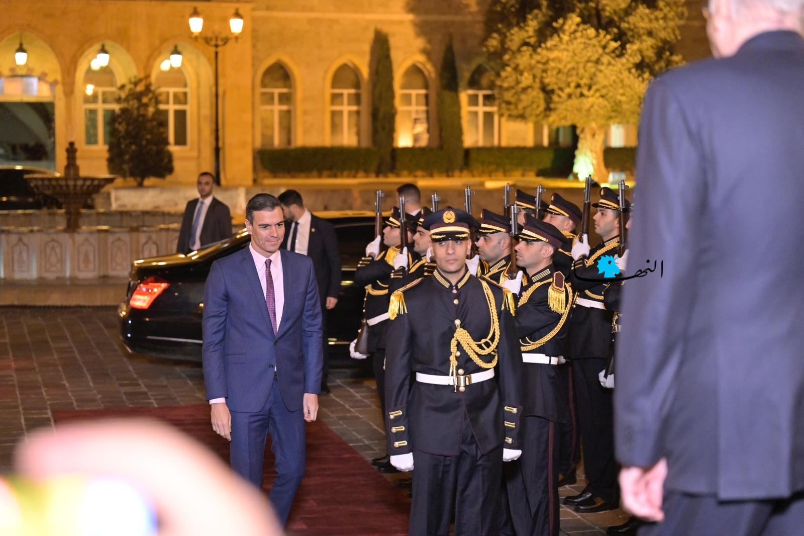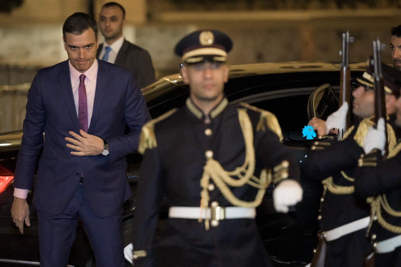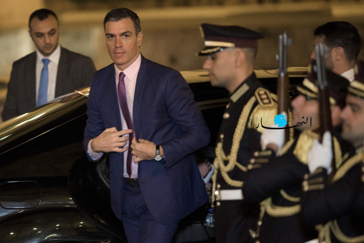 وقد وصل سانشيز الى السرايا عند السادسة مساء، حيث كان في استقباله رئيس الحكومة ورحبت به ثلة من سرية حرس رئاسة الحكومة، قبل ان ينتقلا الى الصالون الداخلي حيث صافح الرئيس ميقاتي اعضاء الوفد الاسباني الذي ضم وزيرة الدفاع مارغاريتا روبلز، سفير اسبانيا في لبنان جيزوس ايغناسو سانتوس ومديرة قسم الشؤون الخارجية في رئاسة الحكومة الاسبانية ايما اباريتشي.