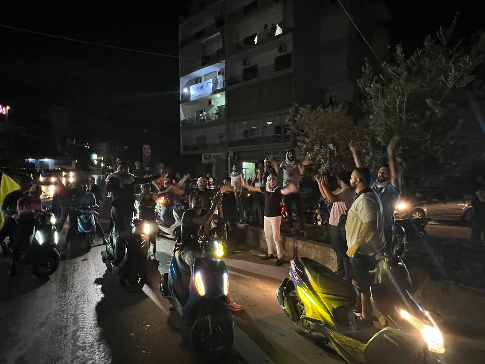 وعند ساعات المساء، توجّه عدد من الشبان على دراجاتهم النارية نحو السفارة الأميركية في عوكر رافعين الأعلام الفلسطينية.