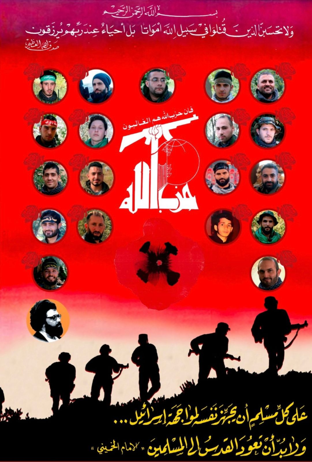 في سياق متصل، نعى "حزب الله"سبعة من عناصره، وهم، محمد حسن منصور "شمران" من بلدة مشغرة في البقاع، بلال عبدالله أيوب "علي حيدر" من بلدة يحفوفا في البقاع أحمد علي الحلاني "نور علي" من بلدة الحلانية في البقاع، علي محمود مرمر "أبو تراب" من مدينة مرجعيون جنوب لبنان، جعفر عباس أيوب "ذو الفقار" من بلدة يونين في البقاع، حيدر خضر عياد "محمد جواد" من بلدة طيرفلسيه جنوب لبنان وعلي يوسف أبو خليل "ذو الفقار" من بلدة القليلة جنوب لبنان، على إثر المواجهات الحدودية مع إسرائيل.