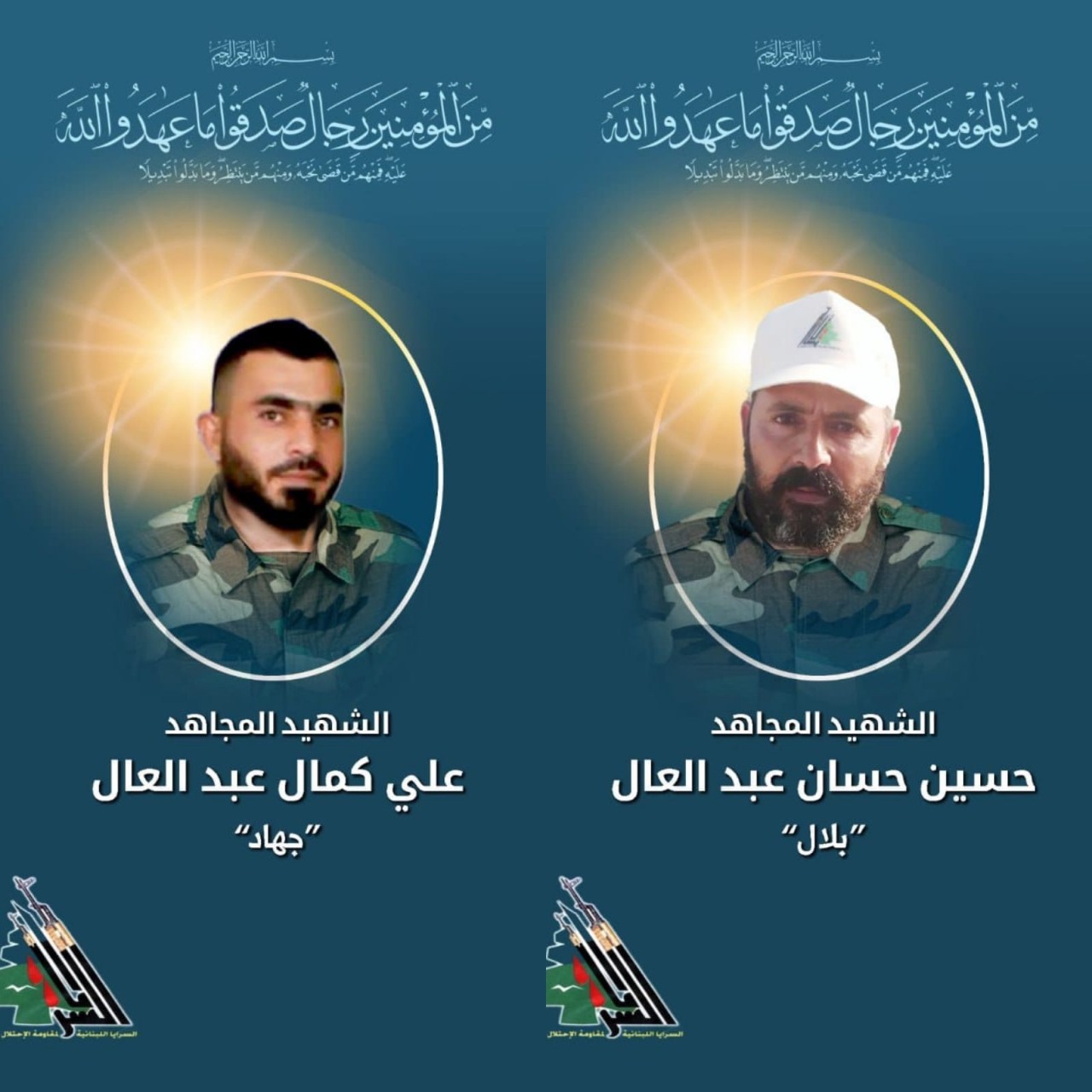 ولاحقاً، نعت "سرايا المقاومة اللبنانية" العنصرَين علي كمال عبد العال "جهاد"، وحسين حسان عبد العال "بلال"، من بلدة حلتا في العرقوب.