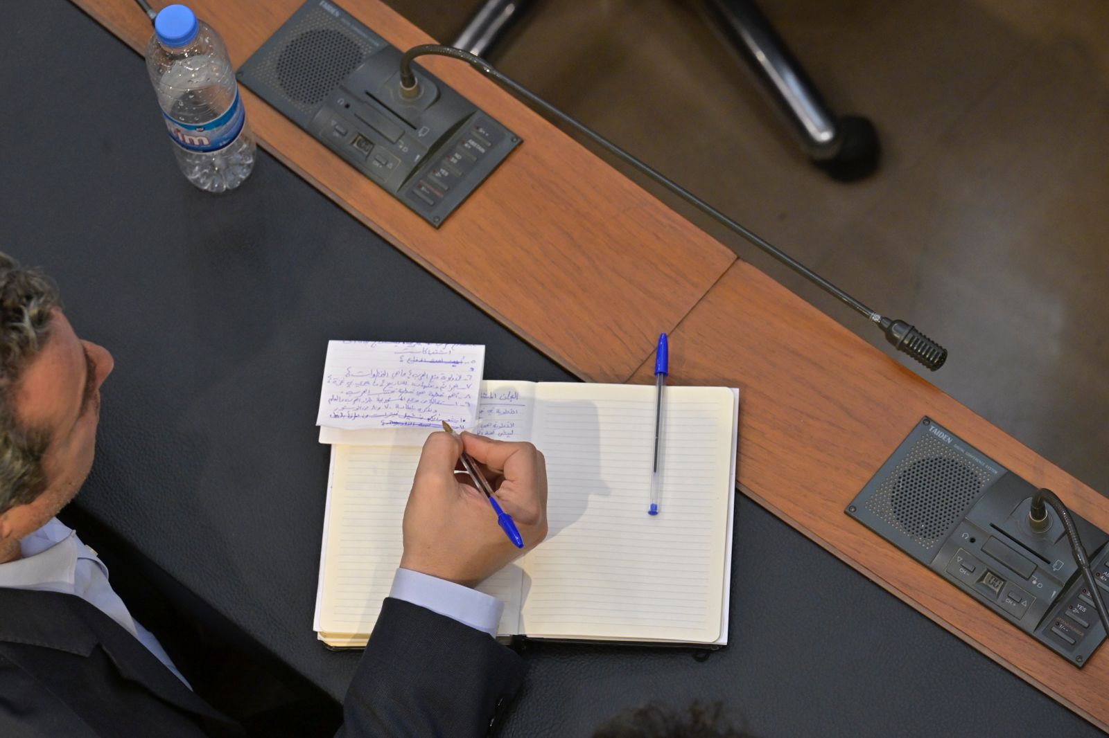 النائب مارك ضوّ يدوّن بعض البنود قبيل انطلاق جلسة اللّجان النيابيّة المشتركة لدرس خطّة الطوارئ الحكوميّة (نبيل إسماعيل).