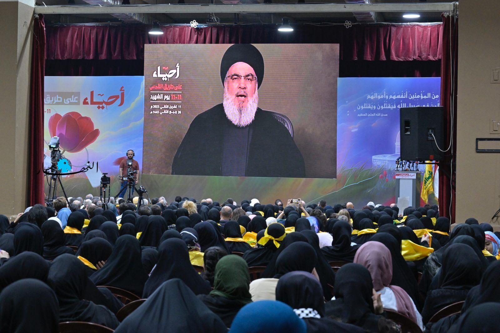 الأمين العام لـ"حزب الله" السيد حسن نصرالله خلال كلمة في "يوم الشهيد" (نبيل اسماعيل).