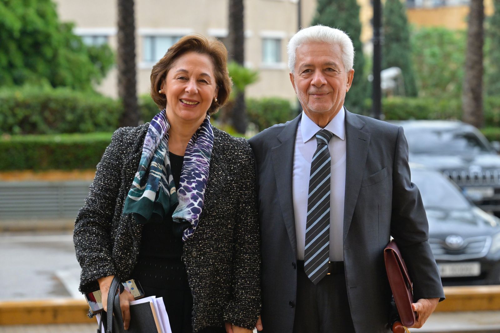 الوزيرة رياشي في السرايا الحكومية برفقة زوجها المستشار الديبلوماسي لرئيس الحكومة بطرس عساكر ( نبيل إسماعيل)