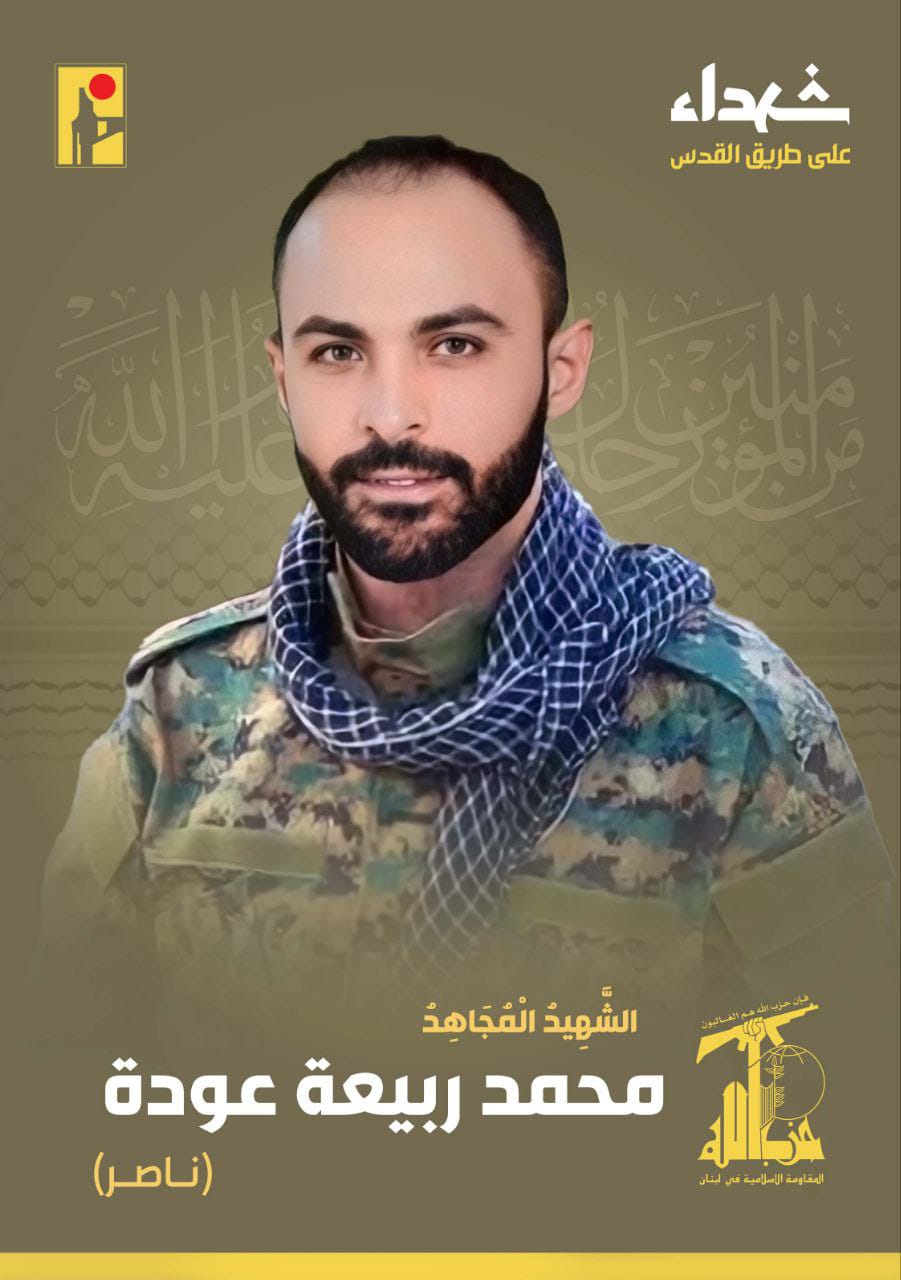 ونعى الحزب عنصره محمد ربيعة عودة "ناصر" من بلدة الخضر في البقاع.