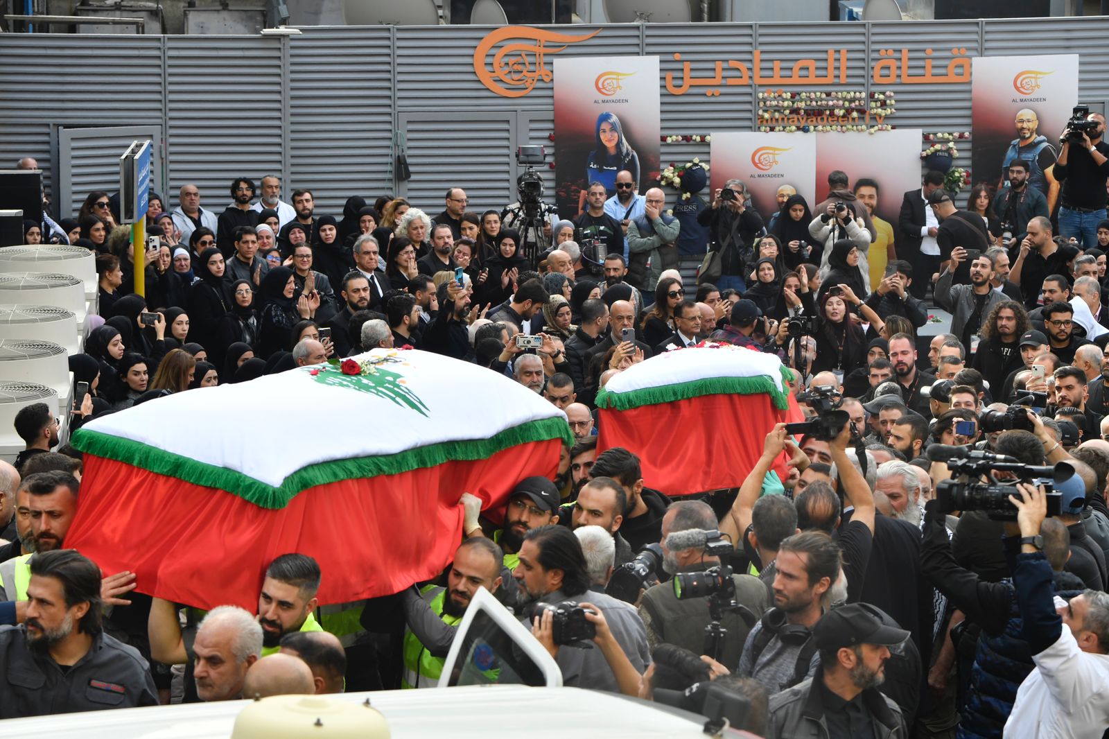 إلى ذلك، ودّعت الصحافة وقناة "الميادين" الزميلين فرح عمر وربيع المعماري، ووصل نعشا الشهيدين صباحاً إلى أمام مبنى القناة، لإلقاء نظرة الوداع عليهما، ومن ثم انتقل جثمان فرح إلى مسقط رأسها مشغرة، وجثمان ربيع إلى الغبيري.