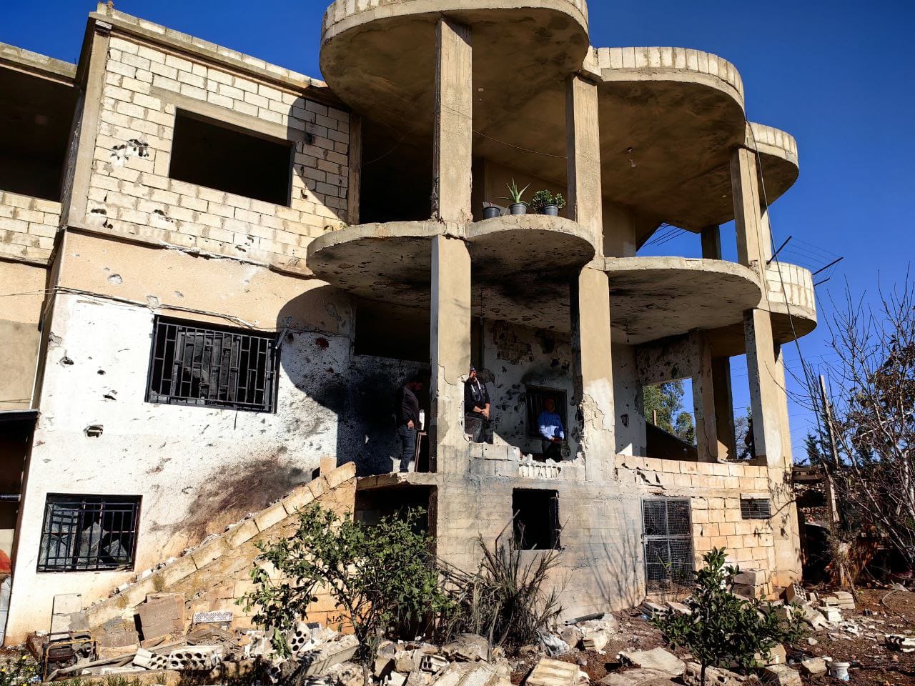 ((المنزل الذي استهدفته قذيفة إسرائيلية، في بلدة حولا المحاذية أطرافها الجنوبيّة لموقع العباد الإسرائيلي)