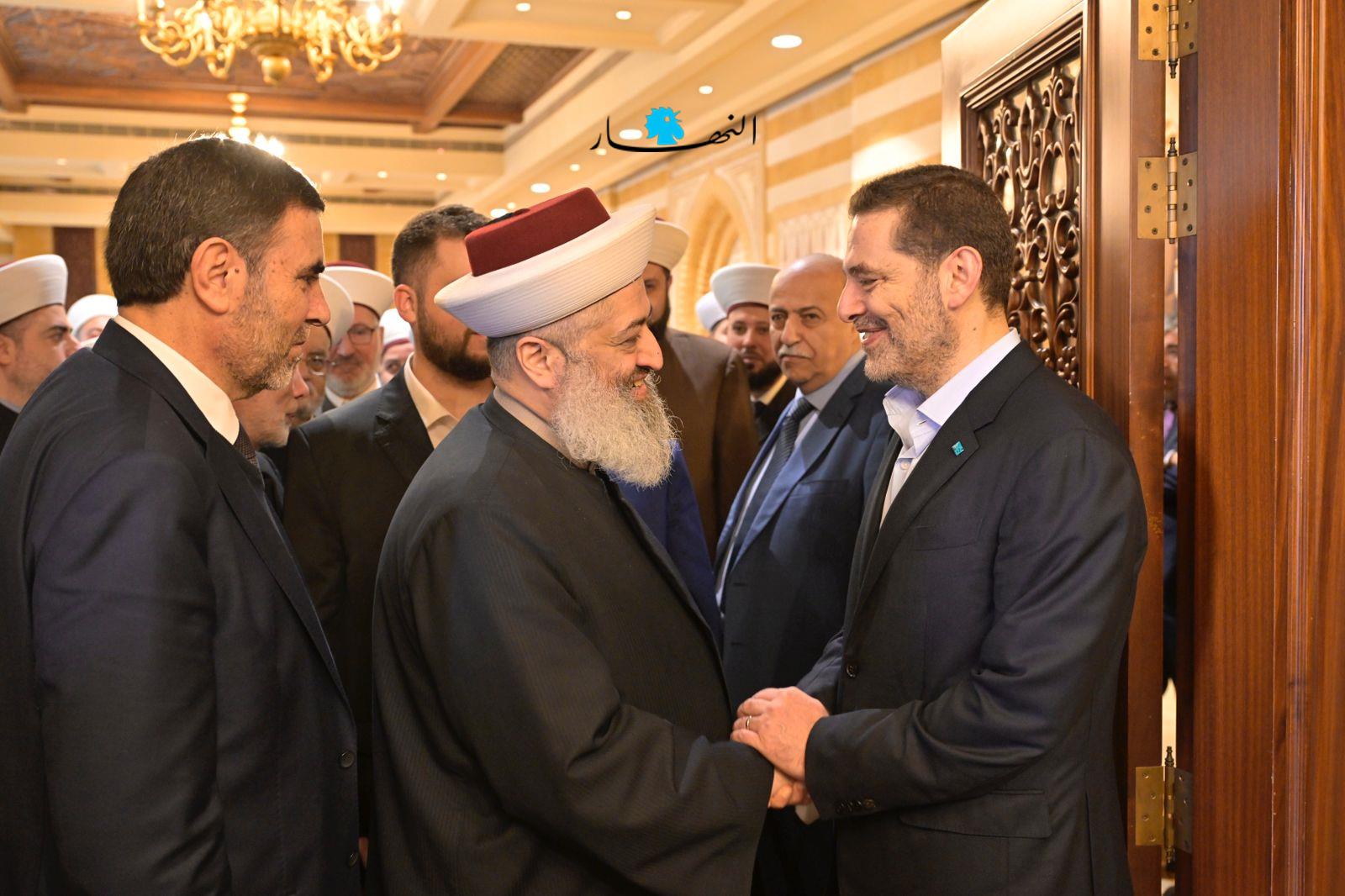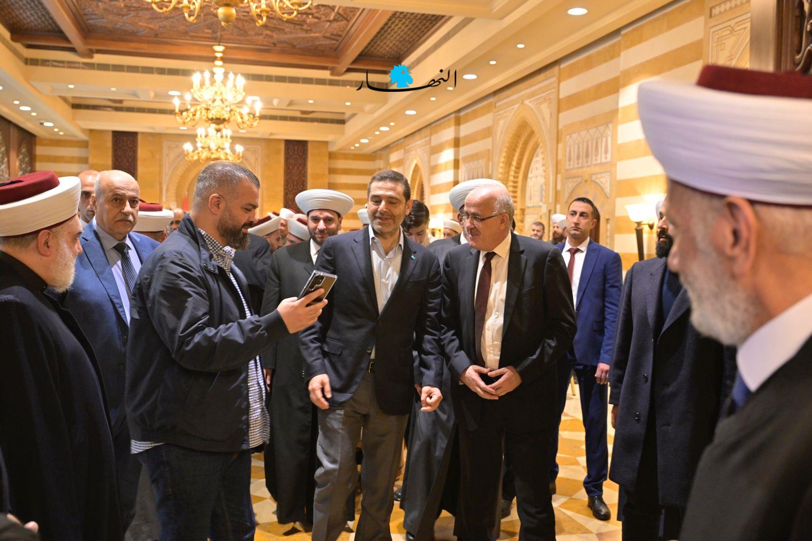 بعد ذلك، استقبل الرئيس الحريري مفتي الجمهورية الشيخ عبد اللطيف دريان وعرض معه آخر المستجدات، قبل أن يتحوّل اللقاء إلى موسع، ضم مفتي المناطق وأعضاء المجلس الشرعي والعلماء، الذين عرض معهم التطورات والأوضاع العامة.