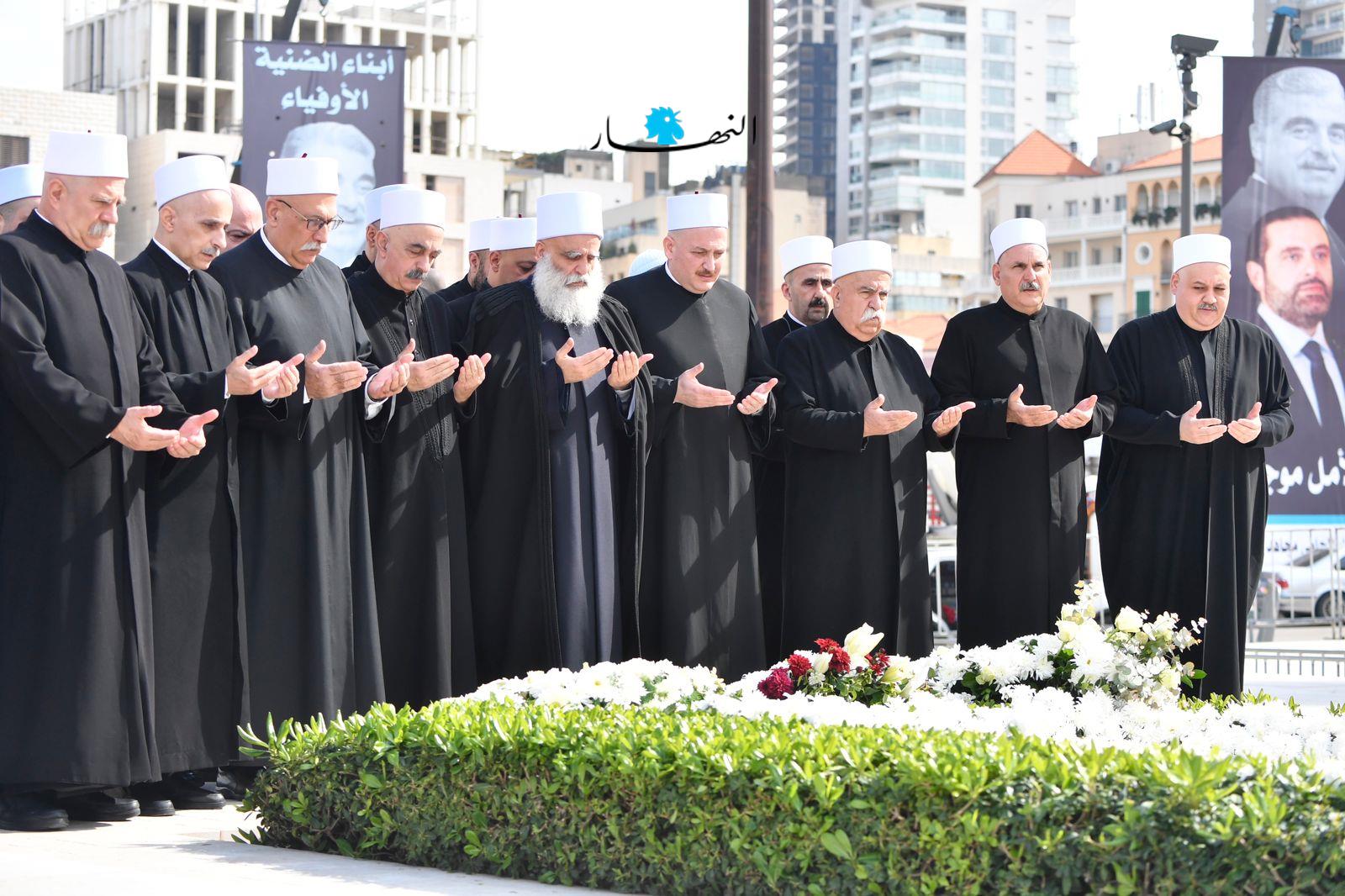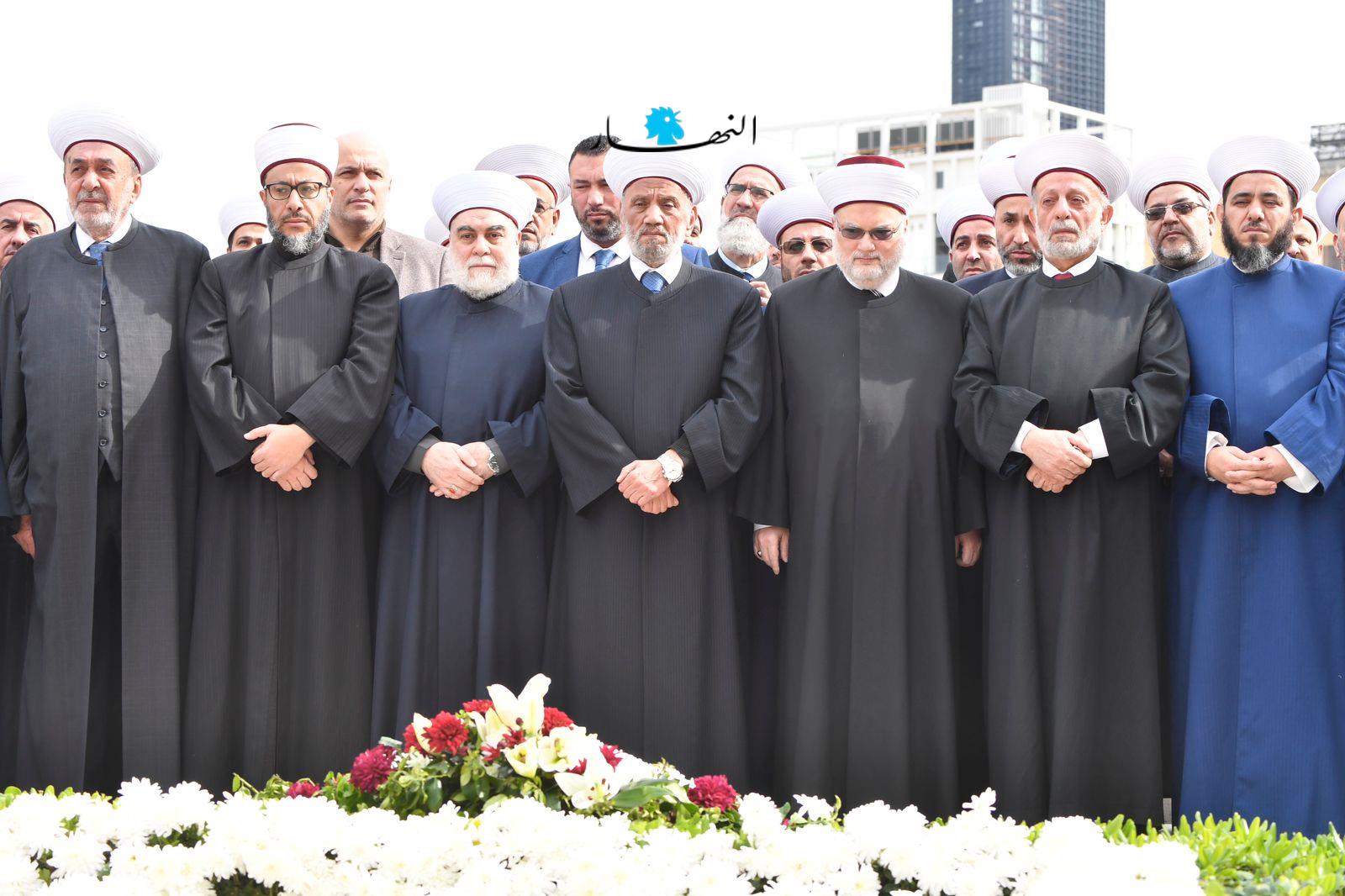 وقبل توجّهه إلى بيت الوسط، زار المفتي دريان على رأس وفدٍ من مشايخ دار الفتوى ضريح الرئيس الشهيد رفيق الحريري في وسط بيروت.