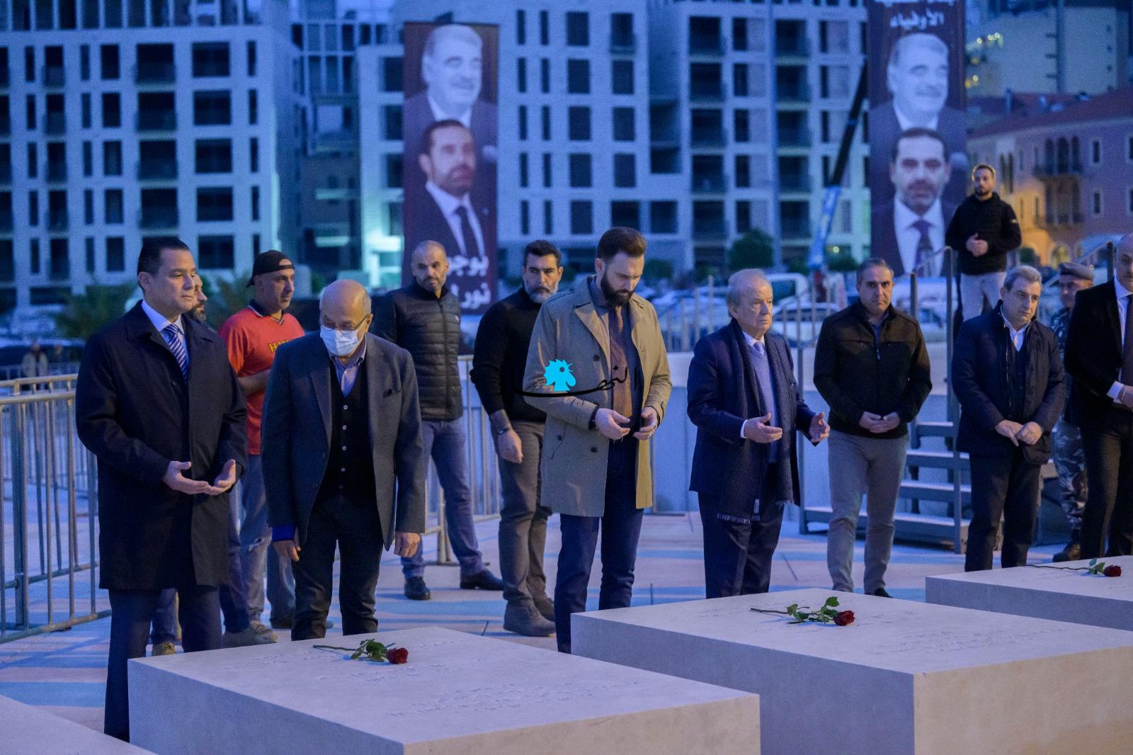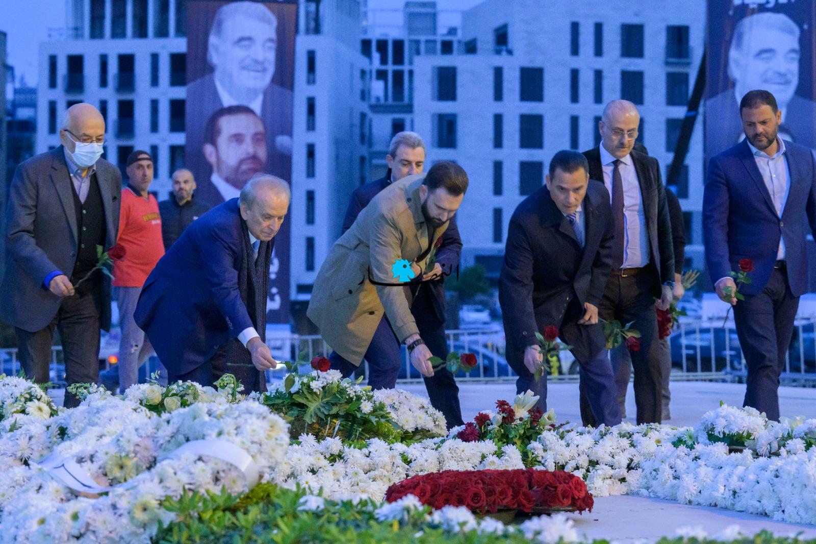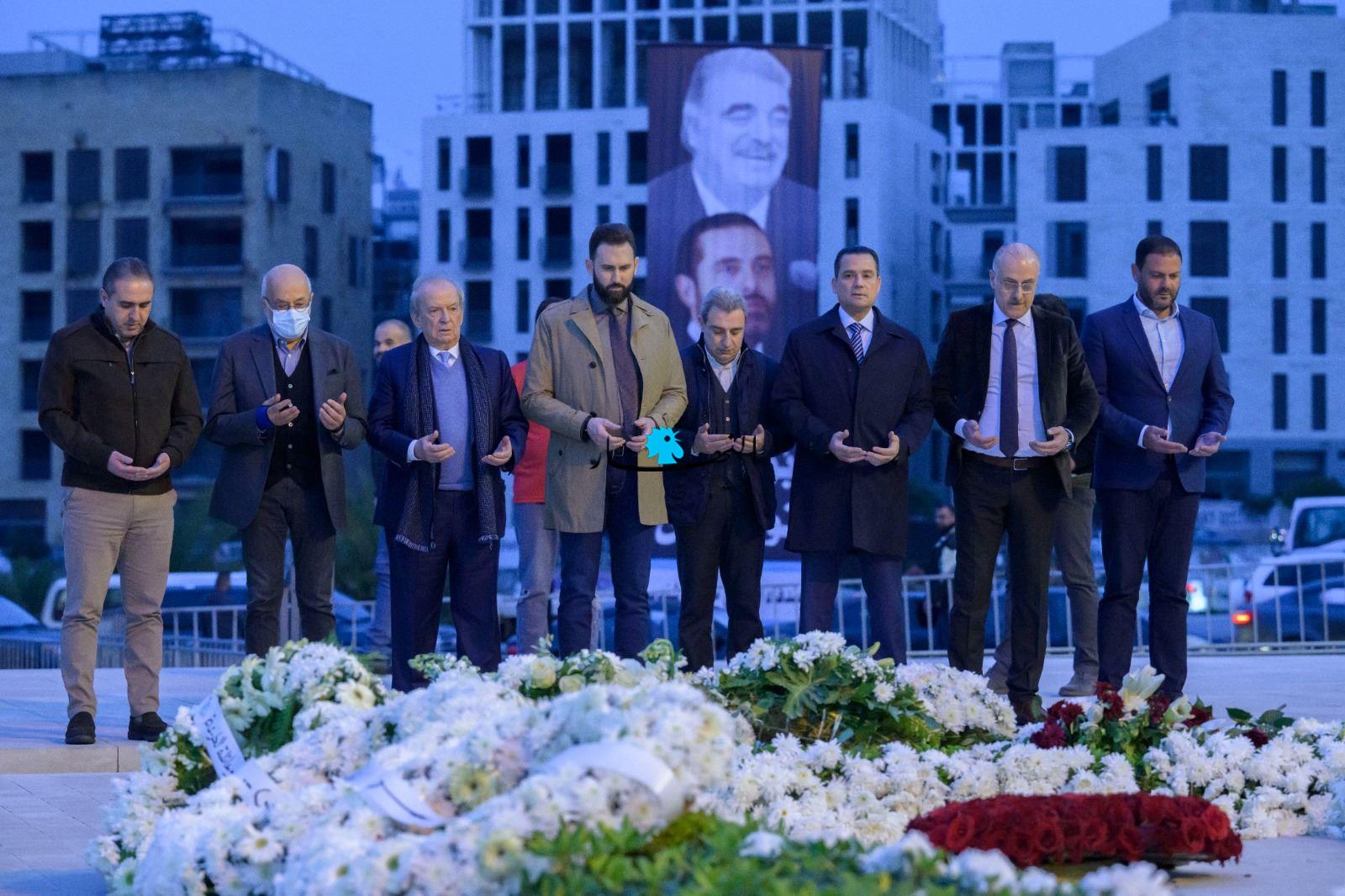 وقرأ جنبلاط وأعضاء الوفد الفاتحة ووضعوا الزهور على أضرحة الشهيد الحريري ورفاقه.