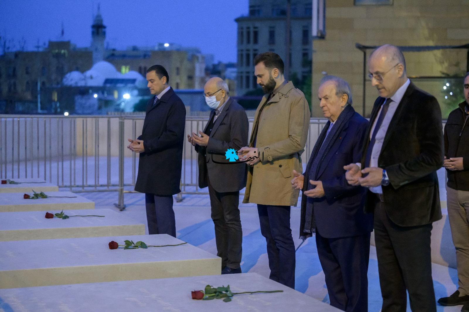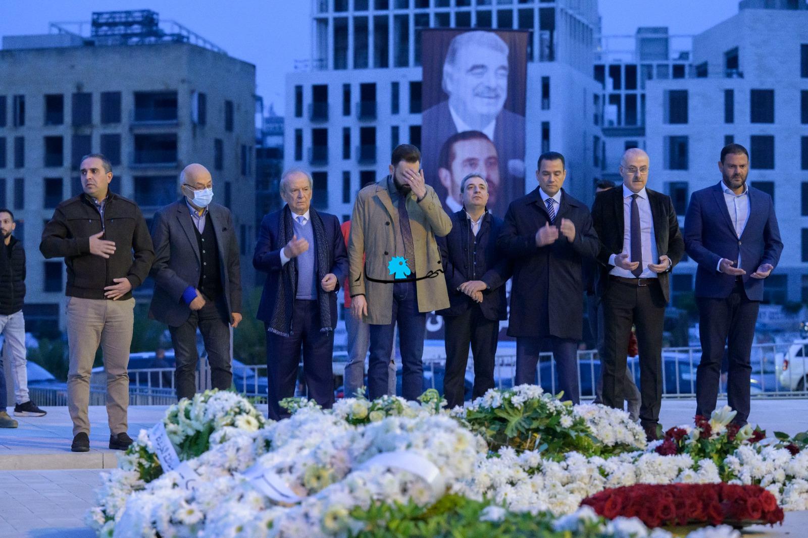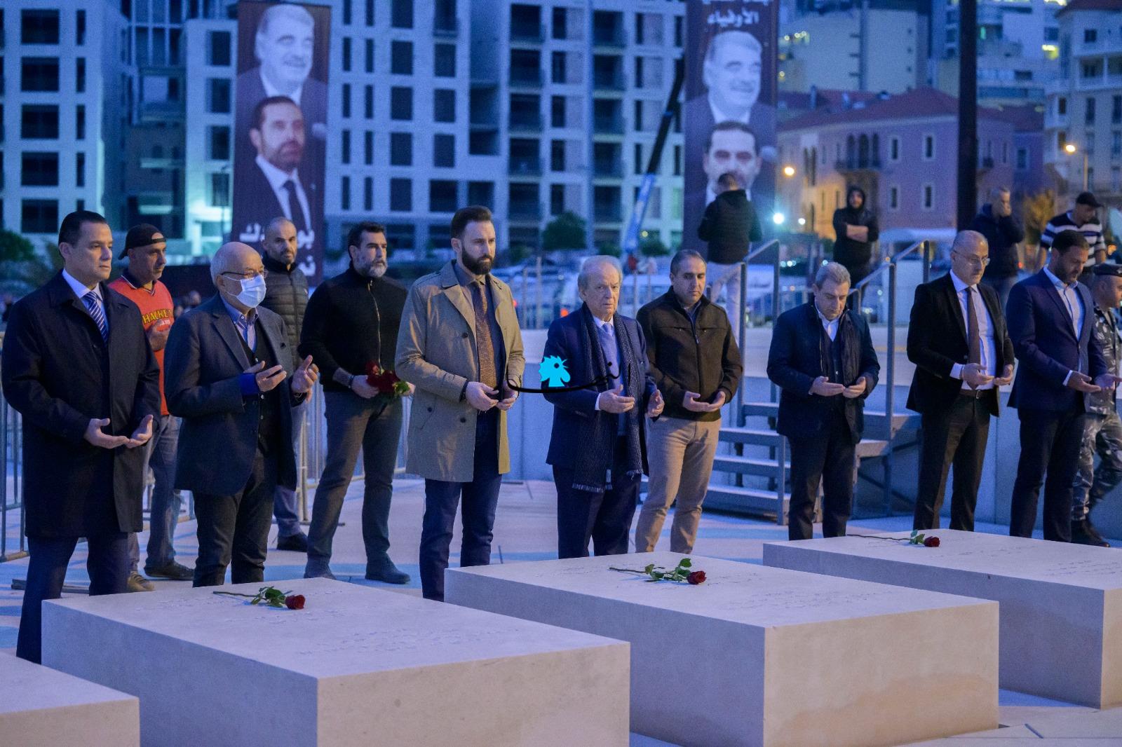 وقرأ جنبلاط وأعضاء الوفد الفاتحة ووضعوا الزهور على أضرحة الشهيد الحريري ورفاقه.