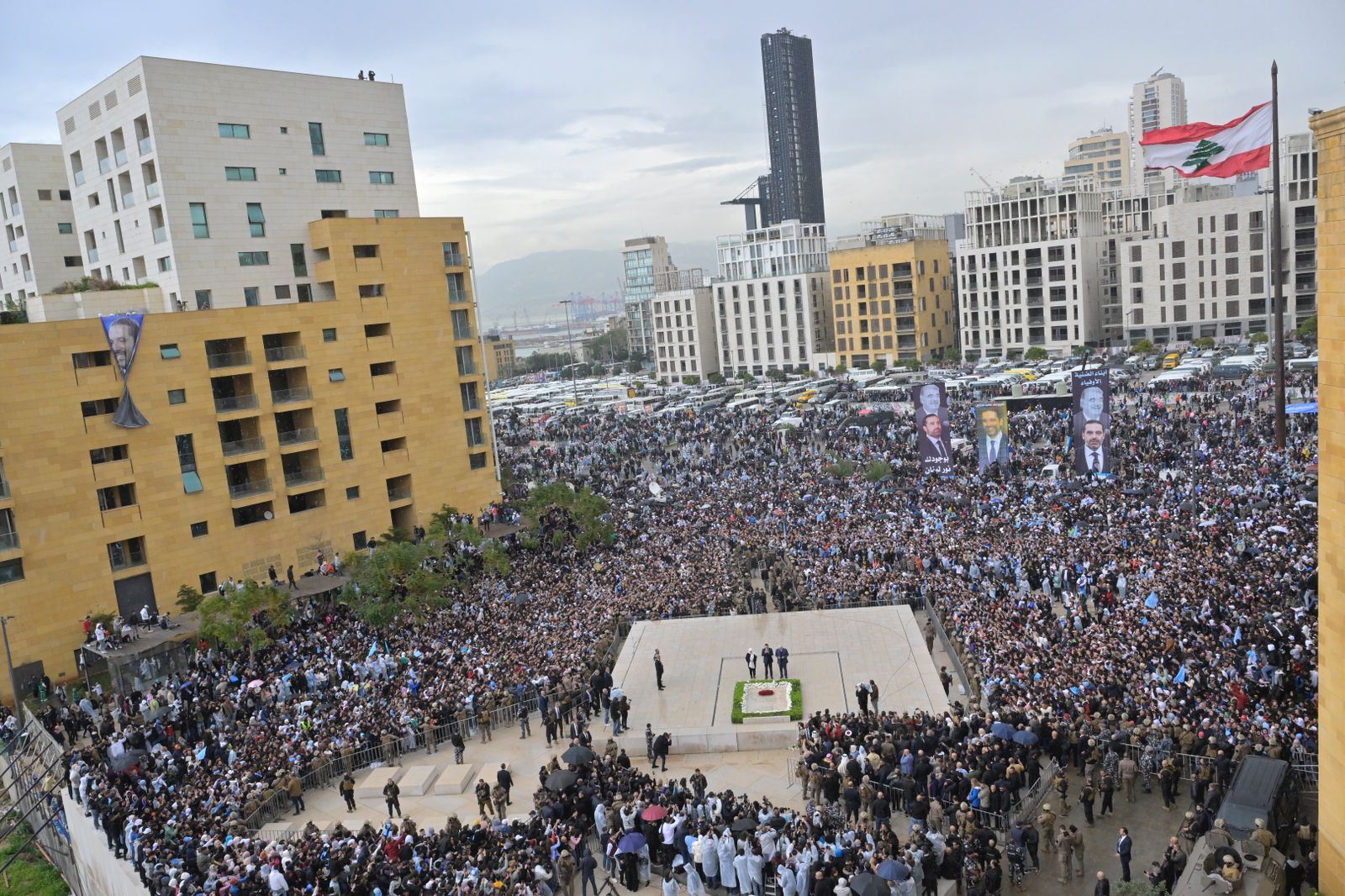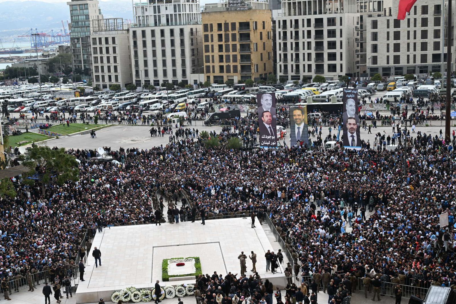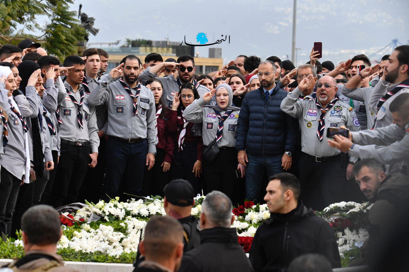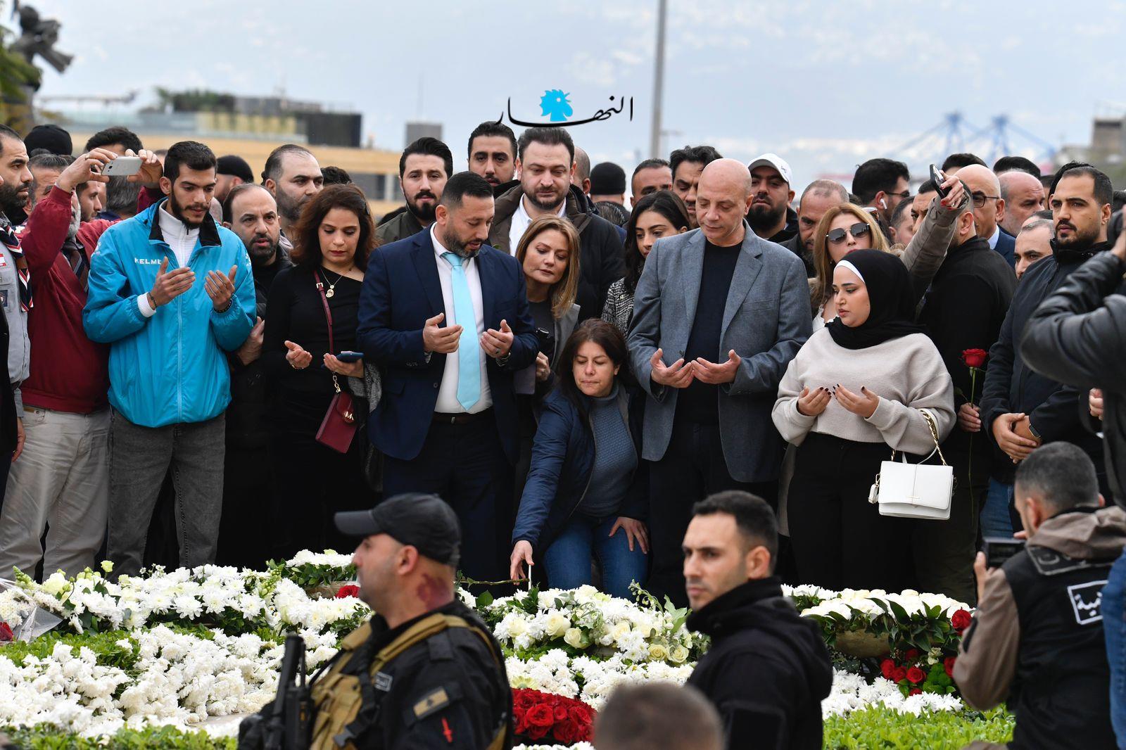 وفود شعبية وسياسية تتوافد إلى ضريح رفيق الحريري في وسط بيروت.