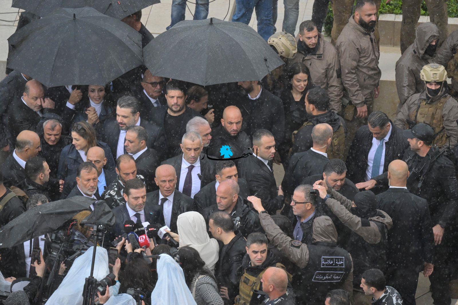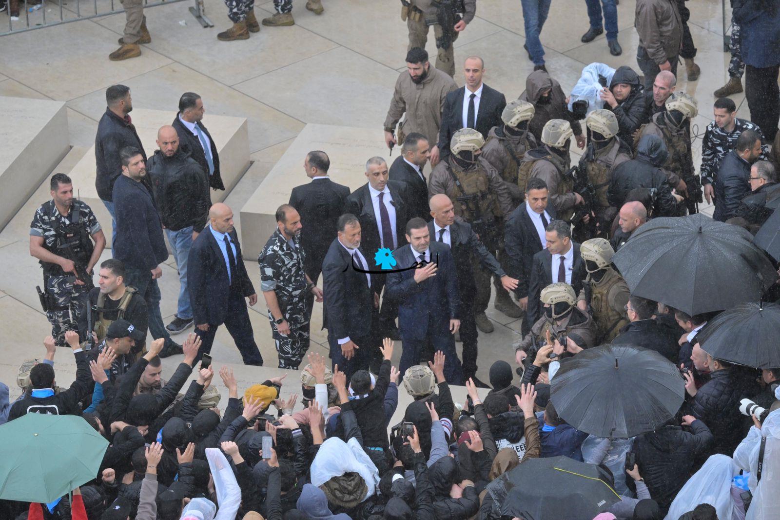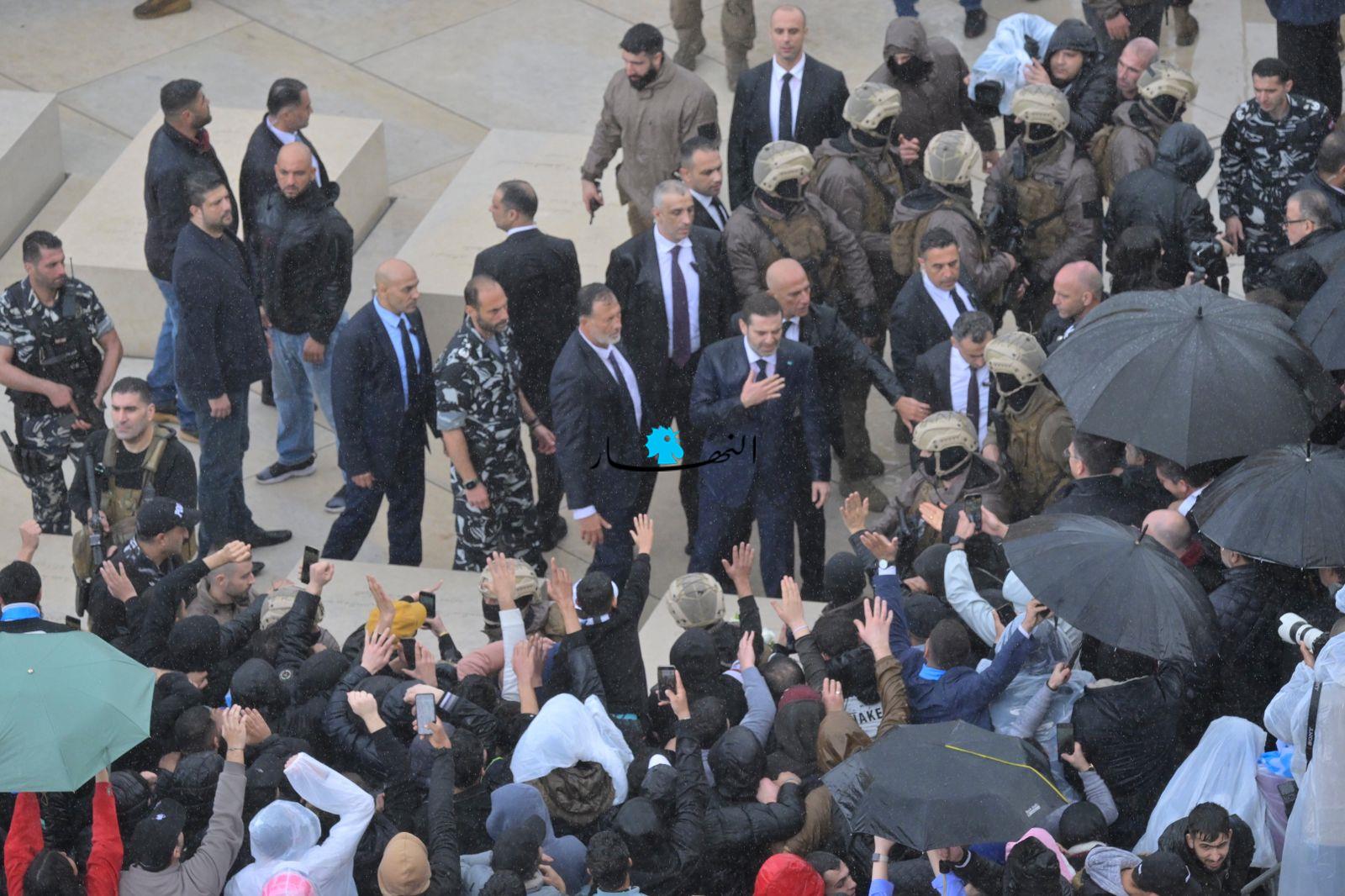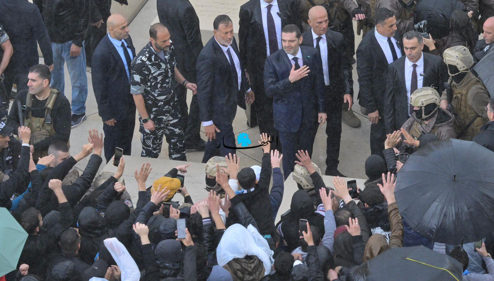 لم يُشكّل الطقس العاصف في وسط بيروت عائقاً بين الرئيس سعد الحريري وجمهور تيار "المستقبل"، مِمّن توافدوا من مختلف المناطق منذ ساعات الصباح الأولى، فلم يبخَل الحريري في ردّ التحيّة والتعبير عن شوقه لهم من مسافة قريبة قُرب الضريح.
