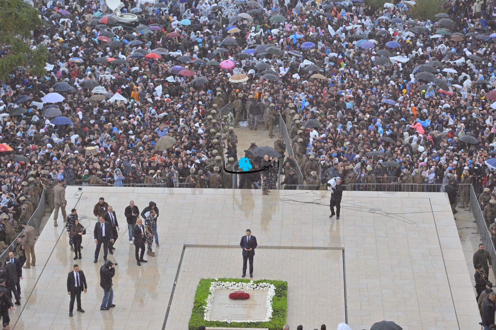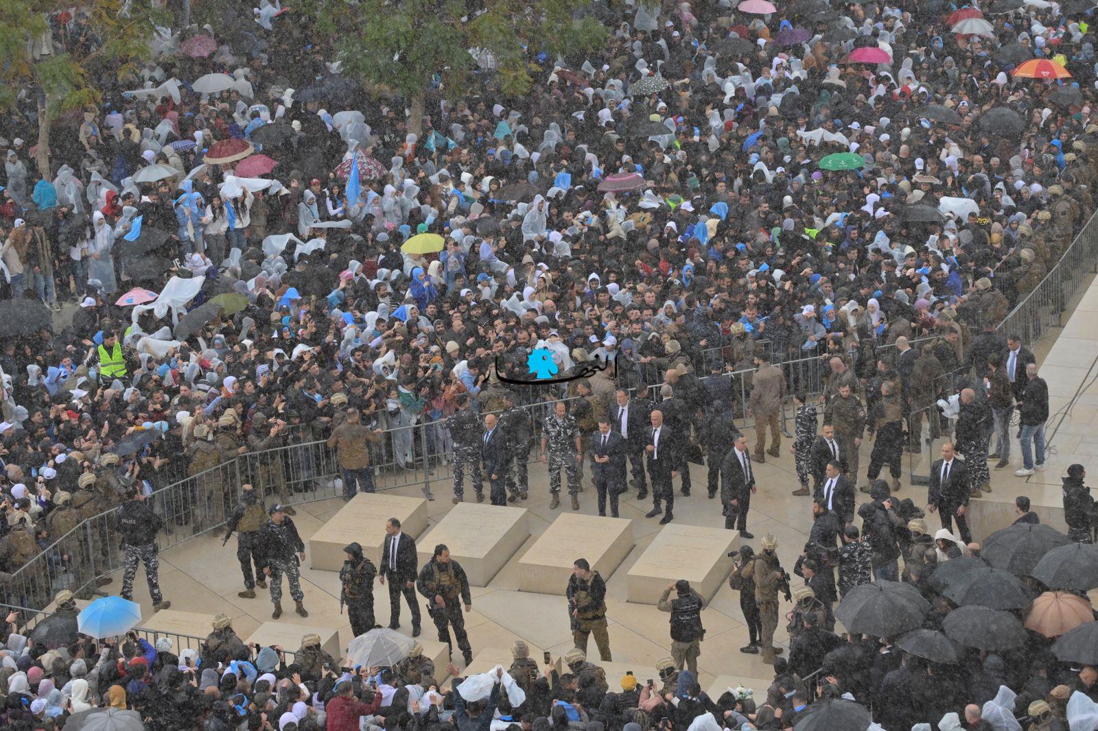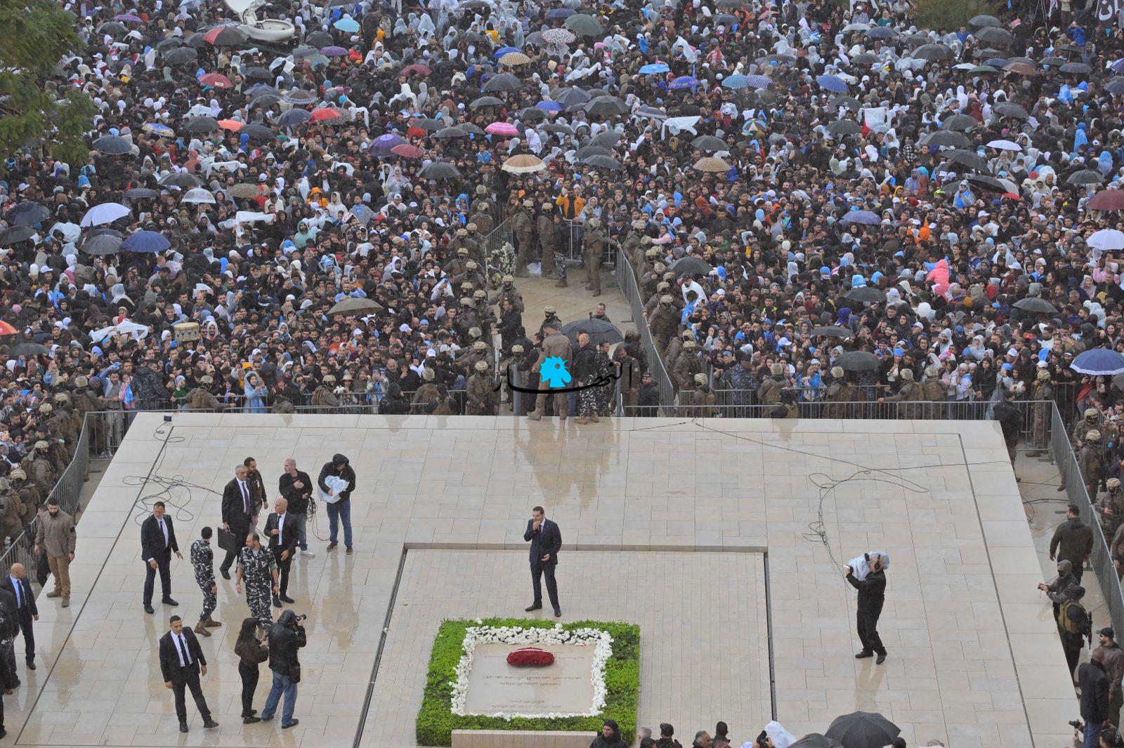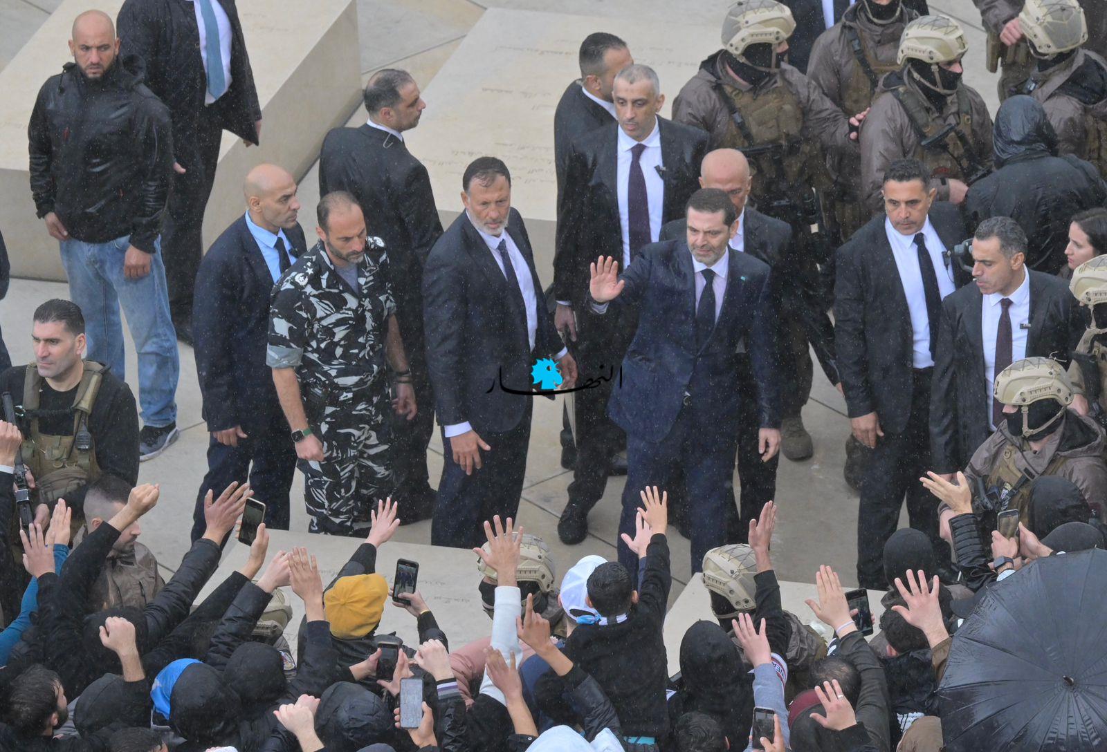 لم يُشكّل الطقس العاصف في وسط بيروت عائقاً بين الرئيس سعد الحريري وجمهور تيار "المستقبل"، مِمّن توافدوا من مختلف المناطق منذ ساعات الصباح الأولى، فلم يبخَل الحريري في ردّ التحيّة والتعبير عن شوقه لهم من مسافة قريبة قُرب الضريح.