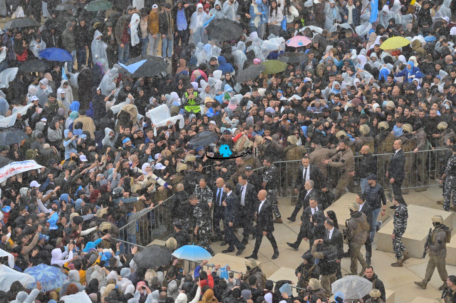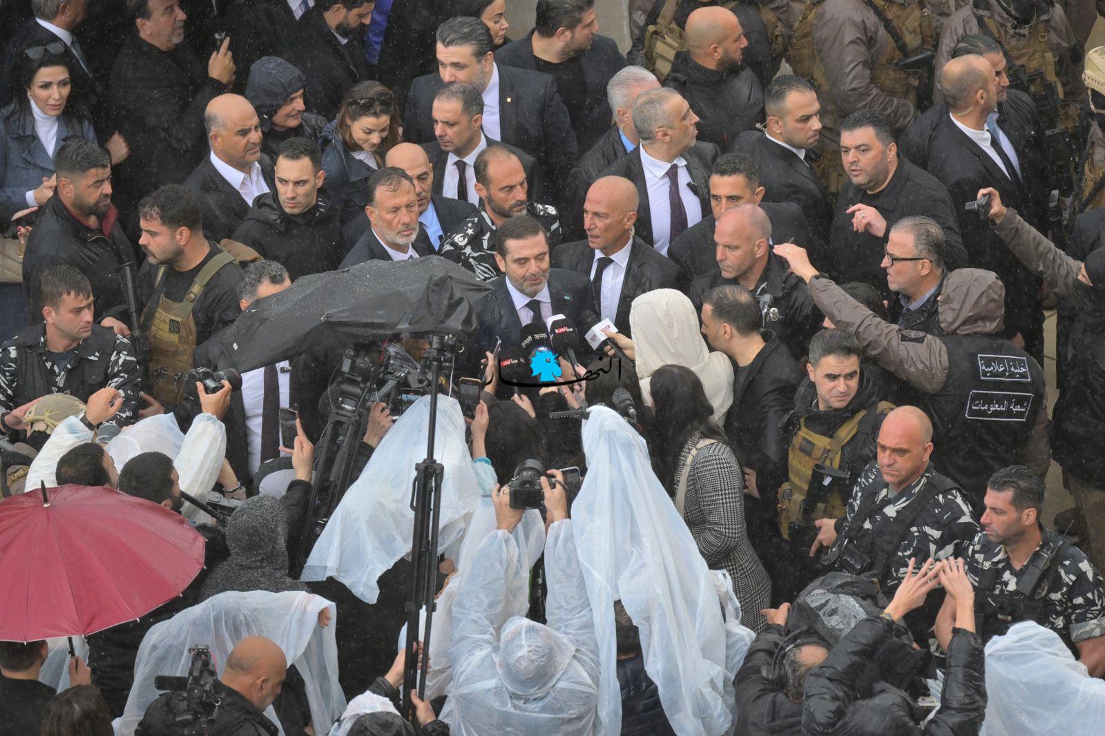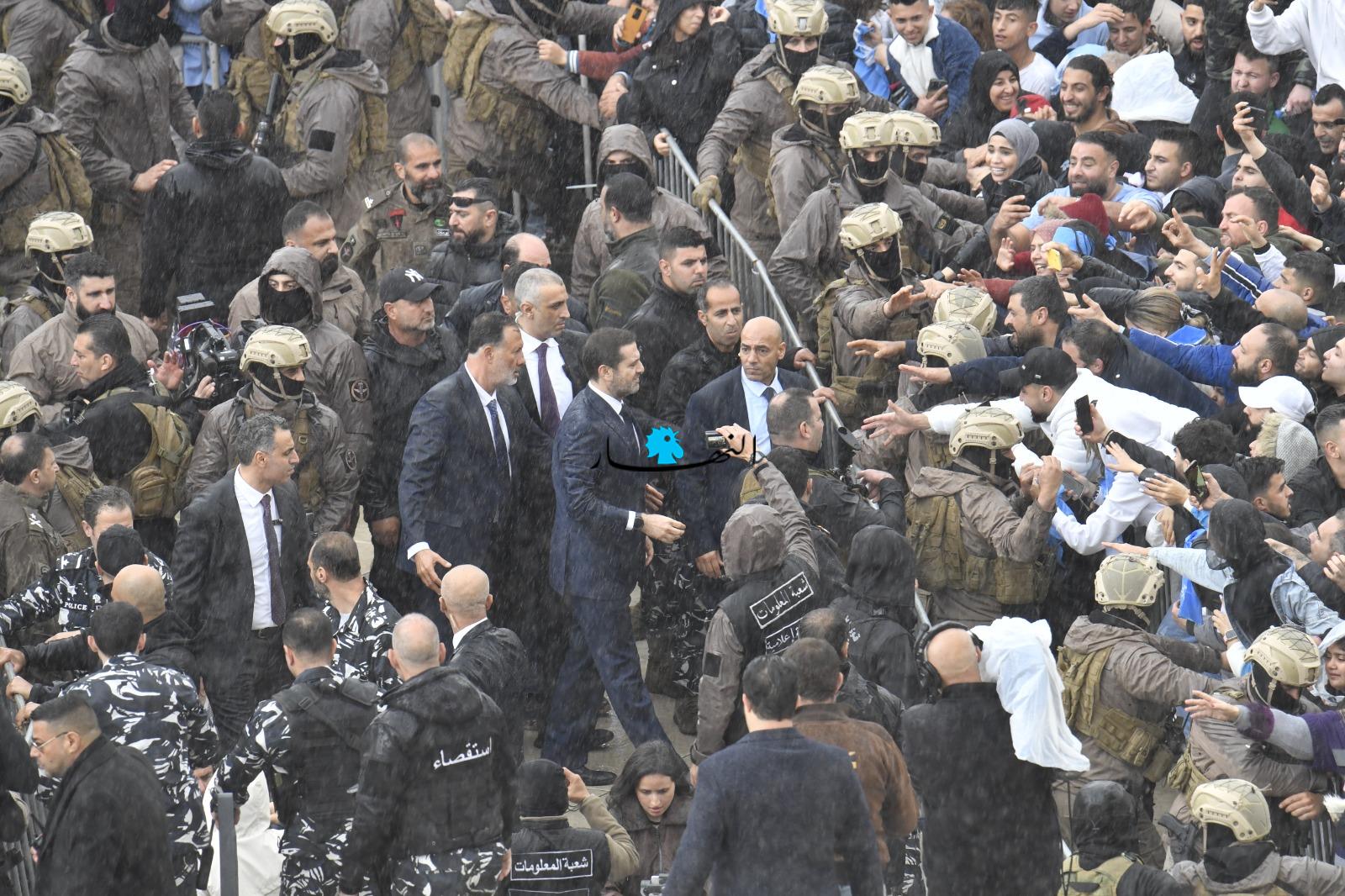 متخطّياً العوائق الحديدية، أبى الرئيس الحريري إلّا أن يلتقي بمحبّيه على تماس مباشر، فوجّه التحية لهم وصافح بعضهم، وقبّل أيدي عدد من النسوة المشاركات، وجال في ما بينهم بمرافقة أمنية مشدّدة.
