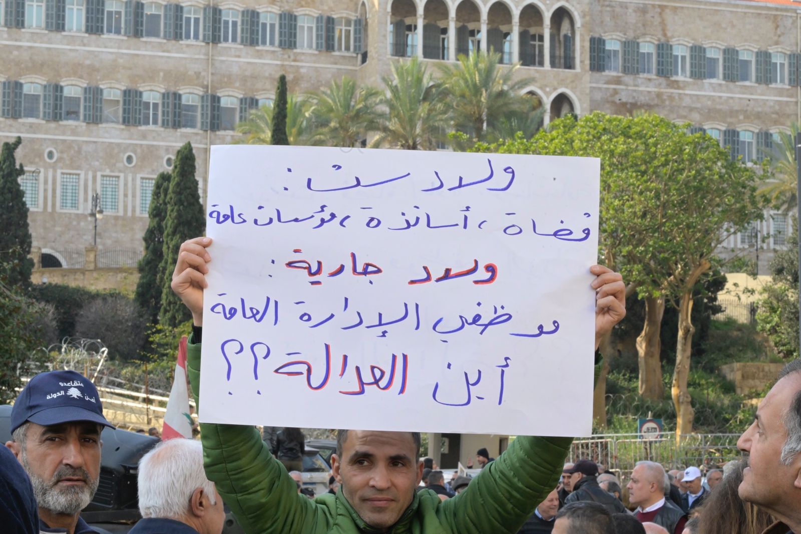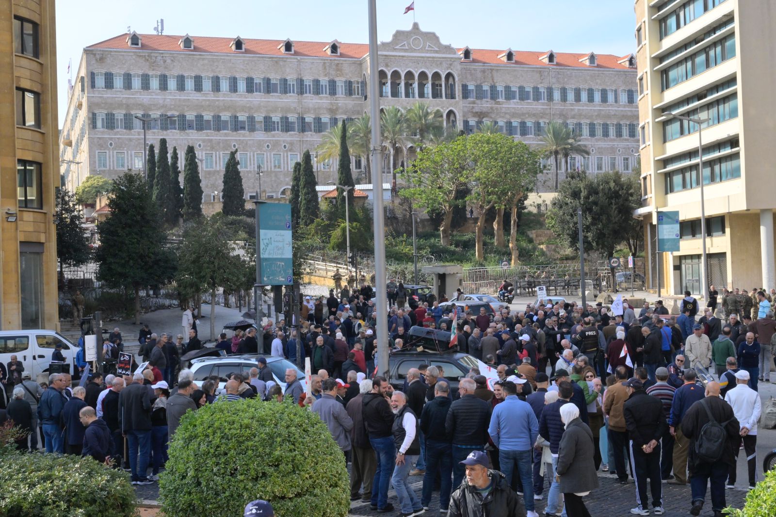 في غضون ذلك، تجمّع العسكريون المتقاعدون في شارع المصارف في بيروت قبل انعقاد جلسة مجلس الوزراء رافعين اليافطات التي تطالب بإنصافهم.