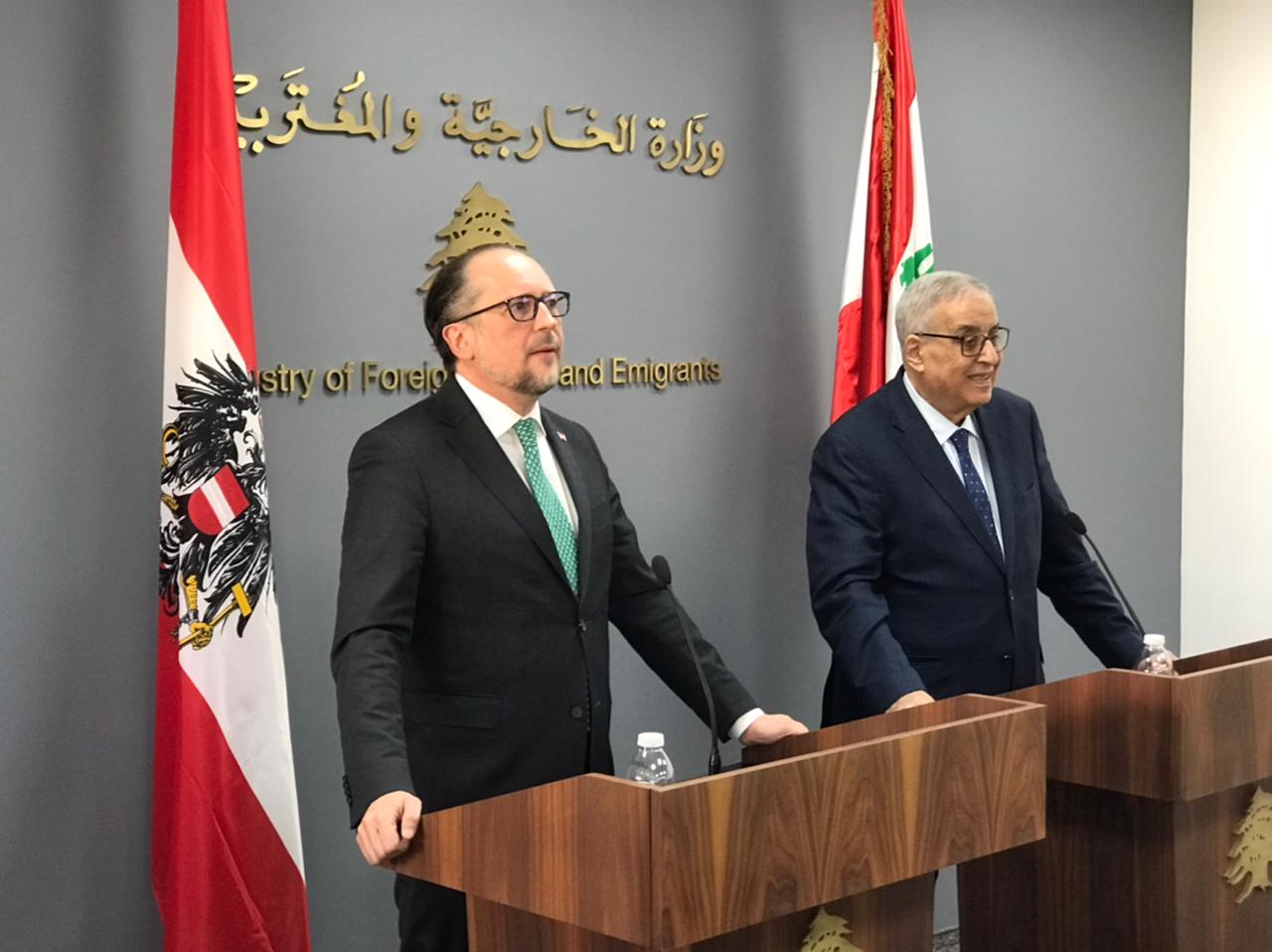 وزير خارجية النمسا يشدد من بيروت على الحلّ الديبلوماسي في المنطقة وتطبيق 1701