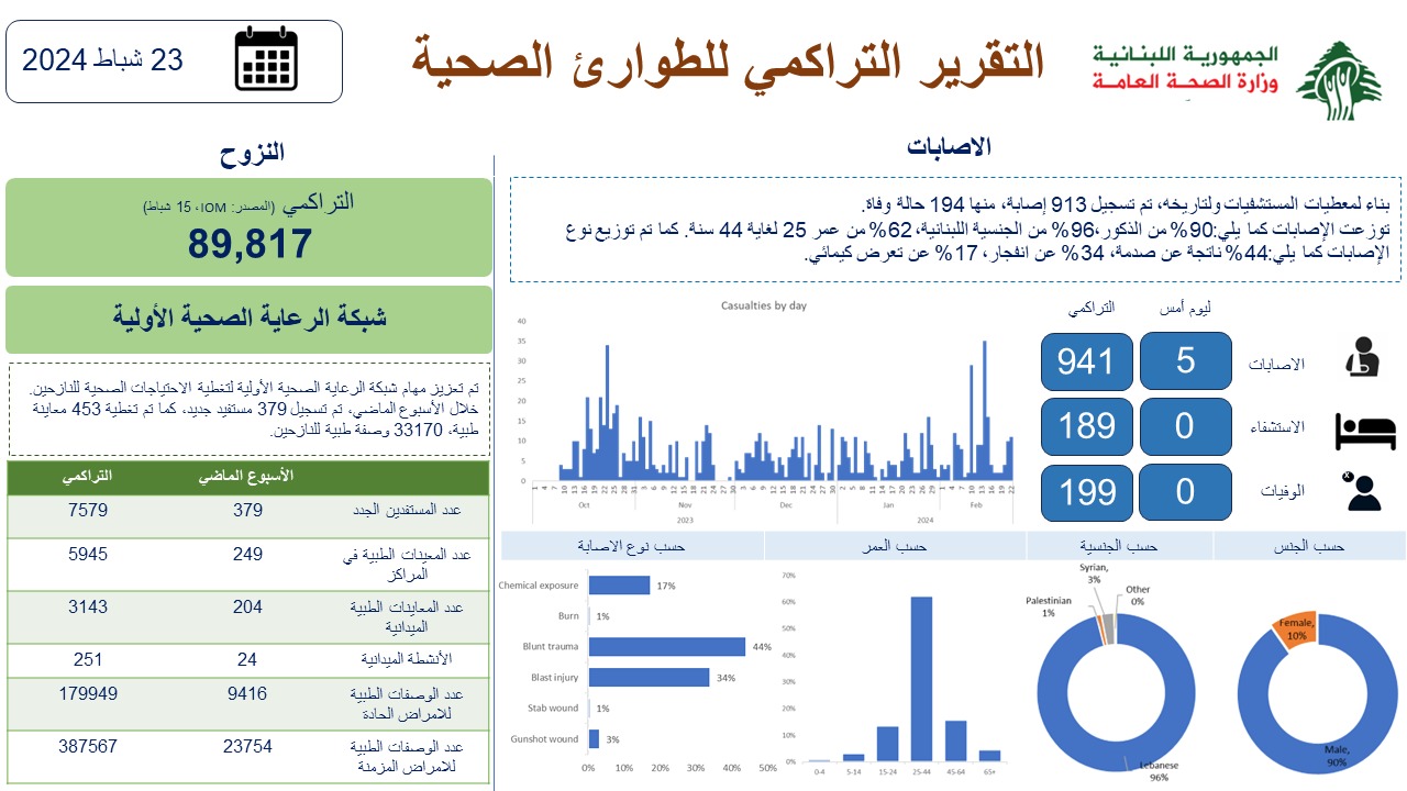 ونشرت وزارة الصحة العامة التقرير التراكمي للطوارئ الصحية لـ٥ آذار ٢٠٢٤.