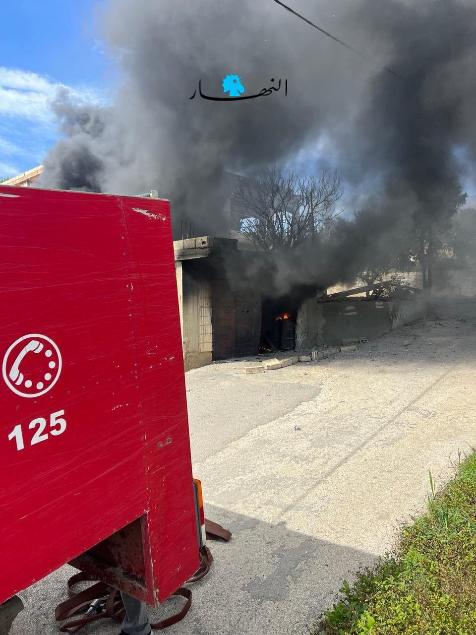 فرق الدفاع المدني تخمد النيران في المنزل الذي استهدفه تالطيران الاسرائيلي في الضهيرة