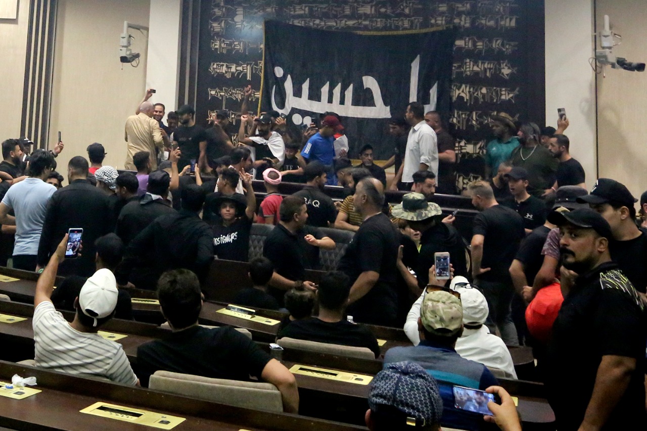 أنصار الصدر يقتحمون البرلمان مجدّداً... الكاظمي: الجميع يتحمّل المسؤوليّة!، أناشيد دينية وطعام... هكذا كان اليوم الأول من اعتصام مناصري الصدر في البرلمان العراقي (صور)