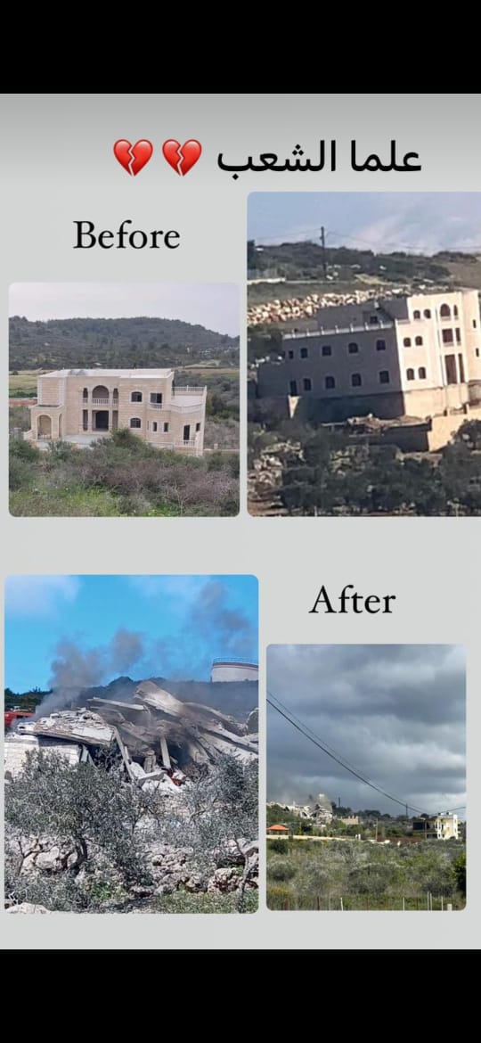 بيوت جميلة وقصور فخمة، تزنرها الحدائق والأشجار والورود كانت قبل نحو ستة أشهر عامرة، تضج بالحياة، ومحال ومؤسسات تجارية لا تهدأ فيها حركة البيع والشراء، بذل أصحابها الغالي والنفيس من أجل بنائها. تحولت بعد اشتعال جبهة الجنوب بين "حزب الله" والجيش الاسرائيلي بعد يوم واحد على عملية طوفان الأقصى التي نفذتها حركة "حماس" ضد المستوطنات الإسرائيلية في غلاف غزة، إلى كتل من الركام والرماد، نتيجة القصف الإسرائيلي الصاروخي والمدفعي من الجو، (الطيران الحربي والمسيّر) ومن البر (مرابض المدفعية الثقيلة).