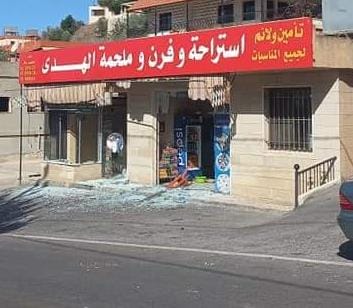 استراحة وفرن وملحمة الهدى في ساحة بلدة عديسة بعد استهدافها بصاروخ من الحربي الإسرائيلي.