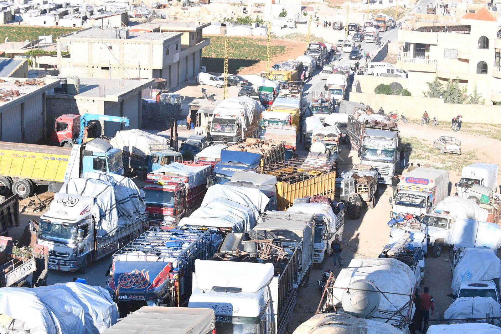 جانب من قافلة العائدين السوريين إلى بلادهم بتنظيم الامن العام اللبناني.