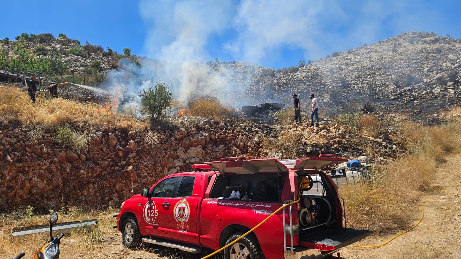 ويواصل عناصر الدفاع المدني جهودهم الحثيثة لإخماد النيران المندلعة في بلدة شبعا الجنوبية، جرّاء القصف الإسرائيلي الفوسفوري والمدفعي، وللحؤول دون تمدّدها إلى المنازل.