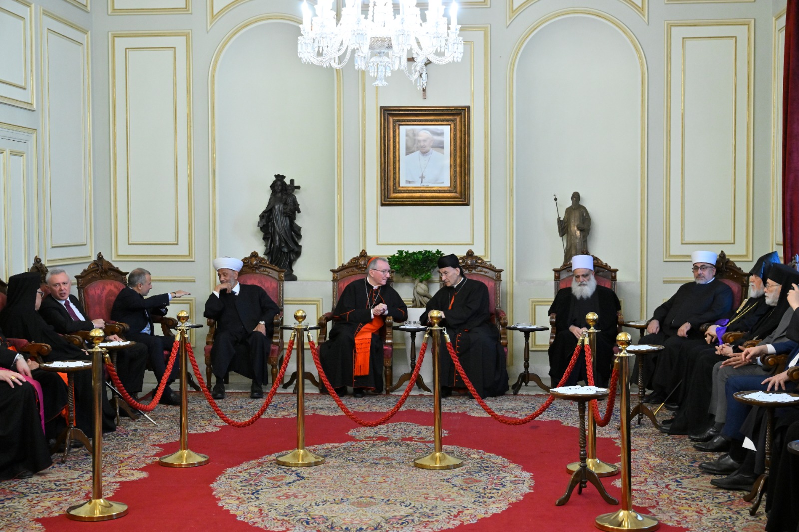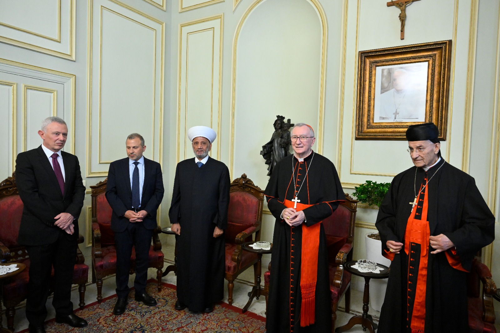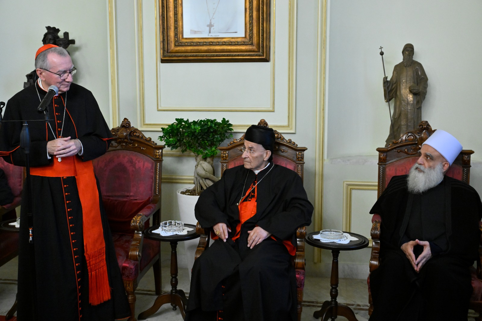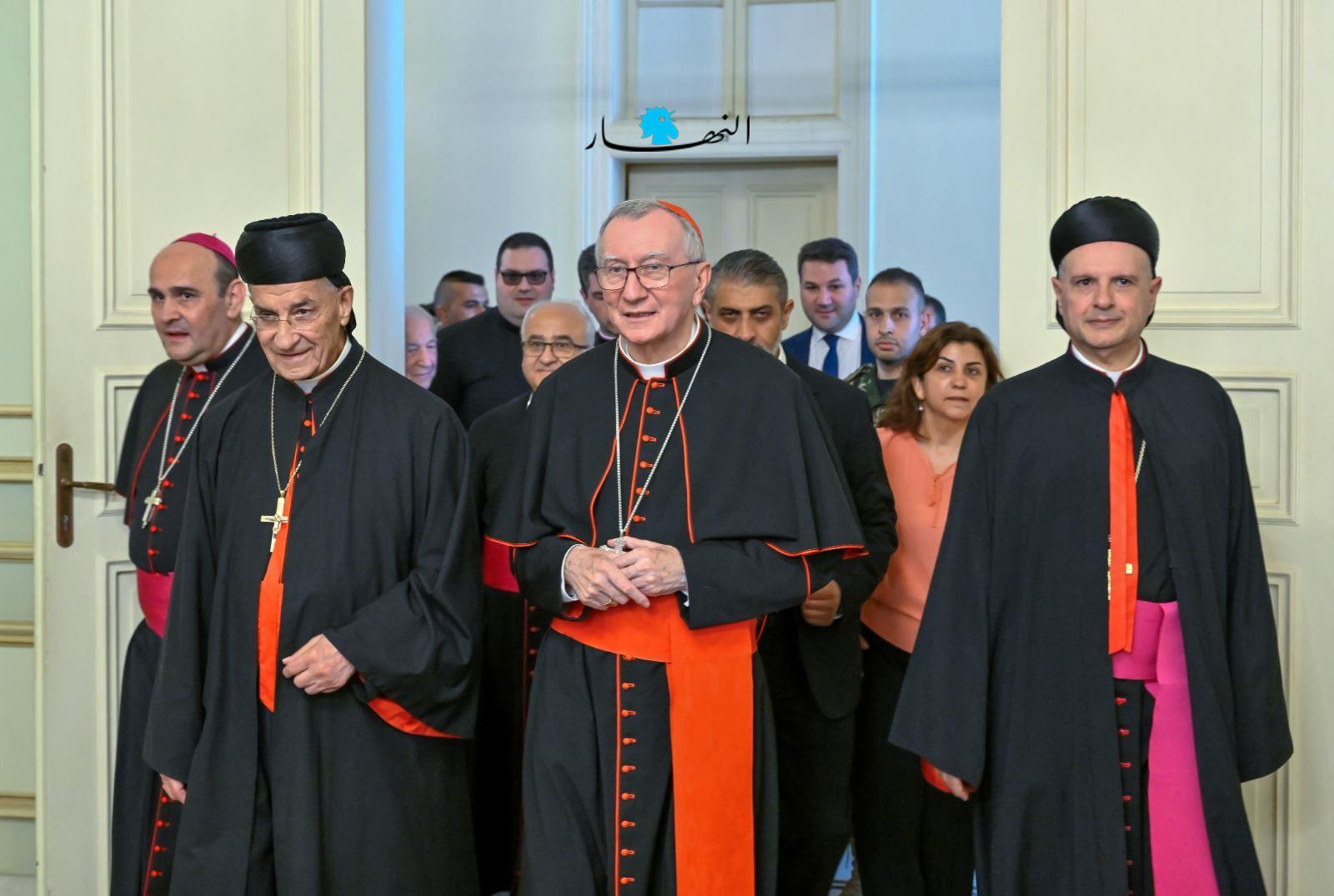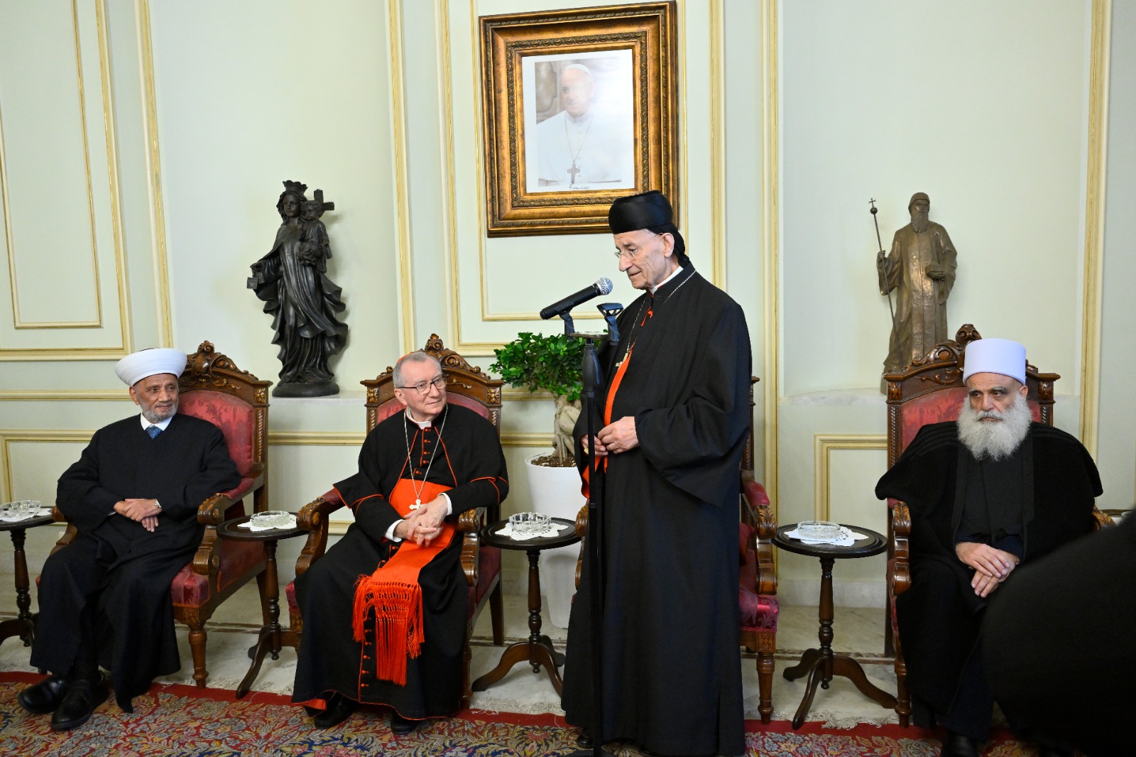 ثم ألقى الكاردينال بارولين كلمة قال فيها: "أنا سعيد بالدعوة التي وجهها لي صاحب الغبطة وسعيد بوجودي معكم اليوم، وأحيّي جميع الحضور من مقامات روحية ودينية ورؤساء أحزاب وطوائف، كما أحمل لكم تحيات قداسة البابا فرنسيس الذي يتابع بدقة تطورات الوضع في لبنان، لبنان الذي لطالما حظي بإهتمام الفاتيكان بإعتباره وطن الرسالة من خلال تمكّن جميع مكونّاته من العيش سوياً والعمل من أجل خير لبنان. اليوم يجب أن يبقى لبنان نموذج تعايش ووحدة في ظل الأزمات والحروب الحاصلة، وأنا هنا اليوم في محاولة للمساعدة في التوصّل الى حلّ لأزمة لبنان المتمثّلة بعدم انتخاب رئيس للجمهورية، من خلال محاولة التوصل الى حلول تناسب الجميع، وأتمنى أن نتمكن جميعنا اليوم من التوصّل الى حل للأزمة الحاصلة"
