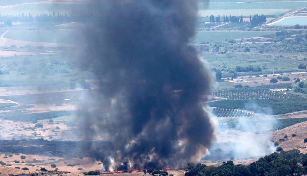 دخان يتصاعد بعد سقوط صاروخ أطلق من جنوب لبنان على منطقة الجليل الأعلى (أ ف ب).