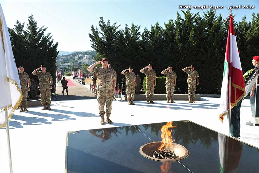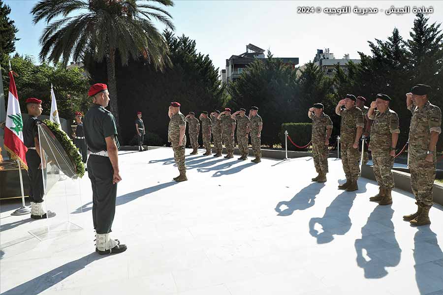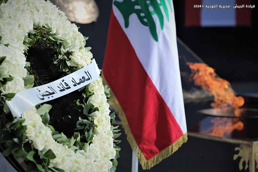 وضع قائد الجيش العماد جوزف عون بمناسبة ذكرى شهداء الجيش، إكليلاً على نصب شهداء الجيش في وزارة الدفاع الوطني، في حضور عدد من الضباط أركان القيادة، تكريماً لأرواحهم الطاهرة وتقديراً لما بذلوه من تضحيات وصولاً إلى الاستشهاد دفاعاً عن لبنان.