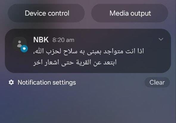 وجاء في نصّ الرسالة: "إذا أنت متواجد بمبنى به سلاح لـ"حزب الله"، ابتعد عن القرية حتى إشعار آخر".
