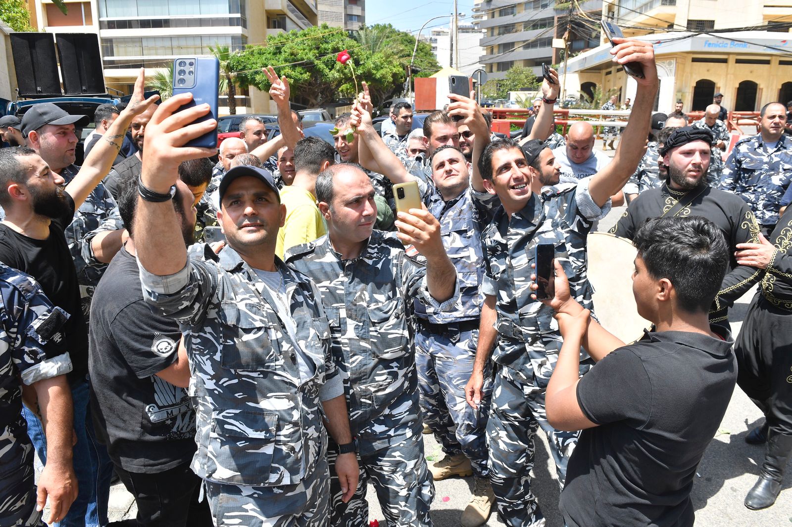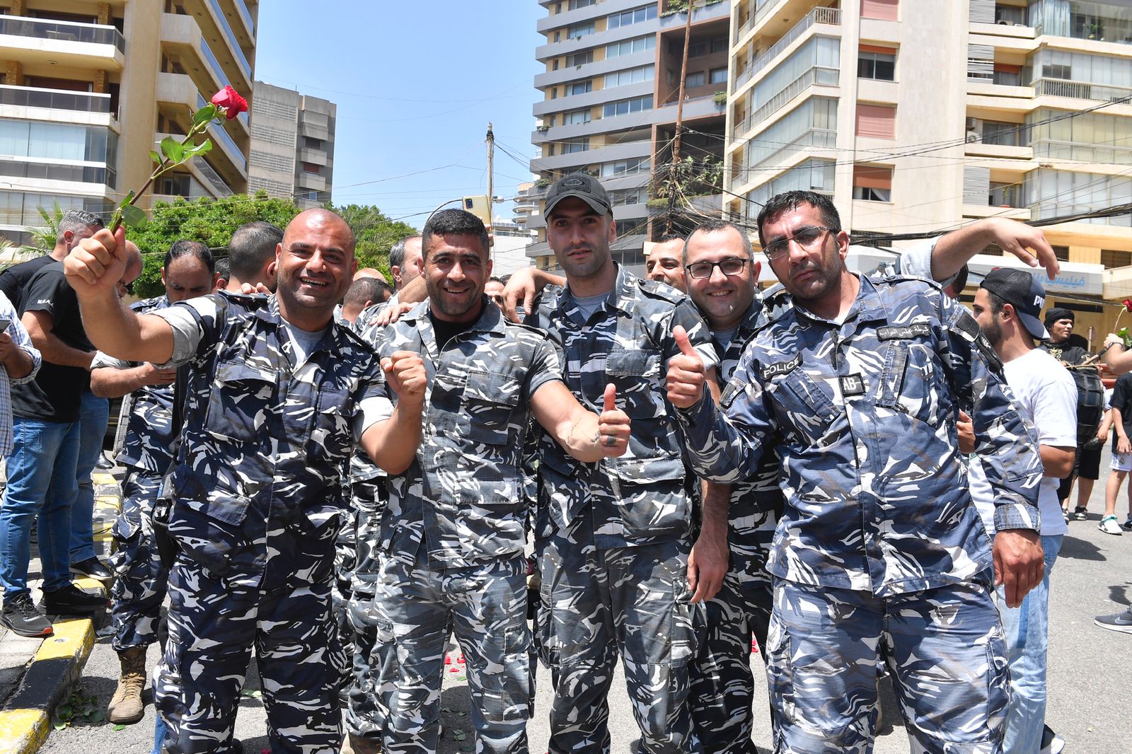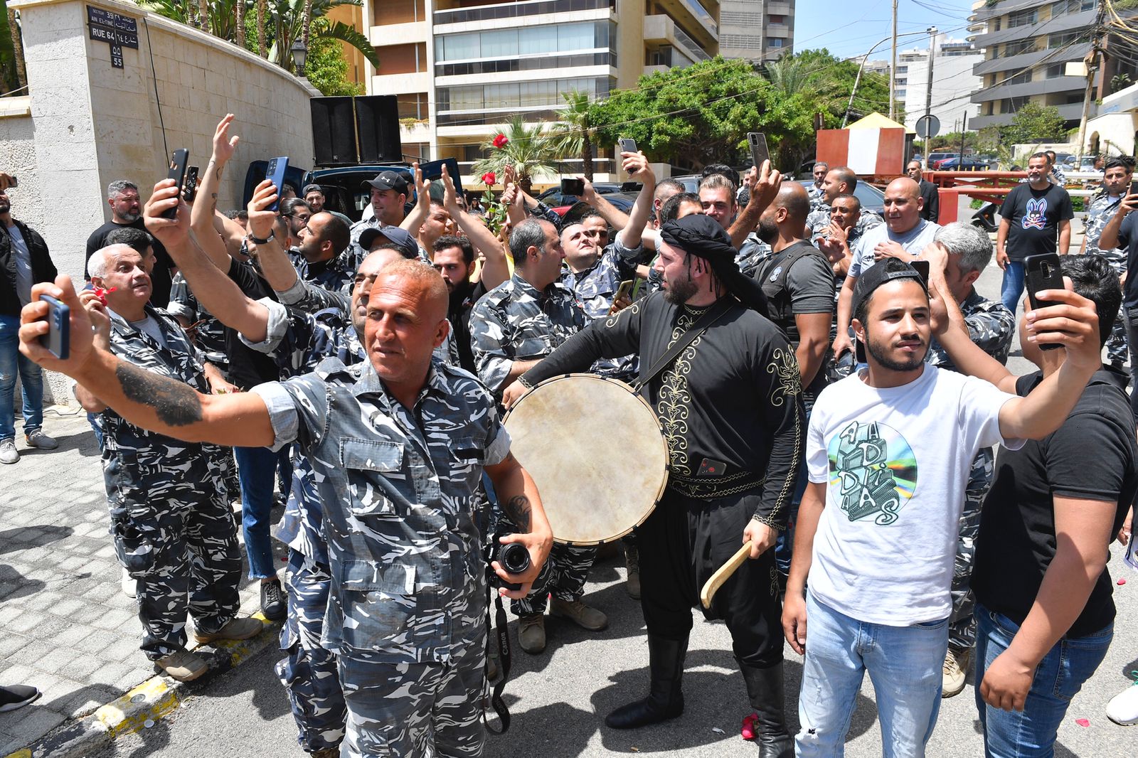عناصر من شرطة عين التينة تحتفل بنجاح الرئيس بري