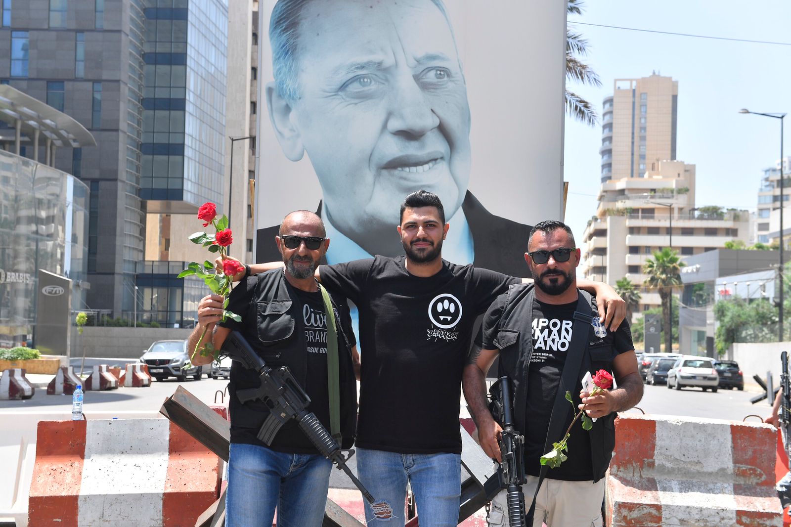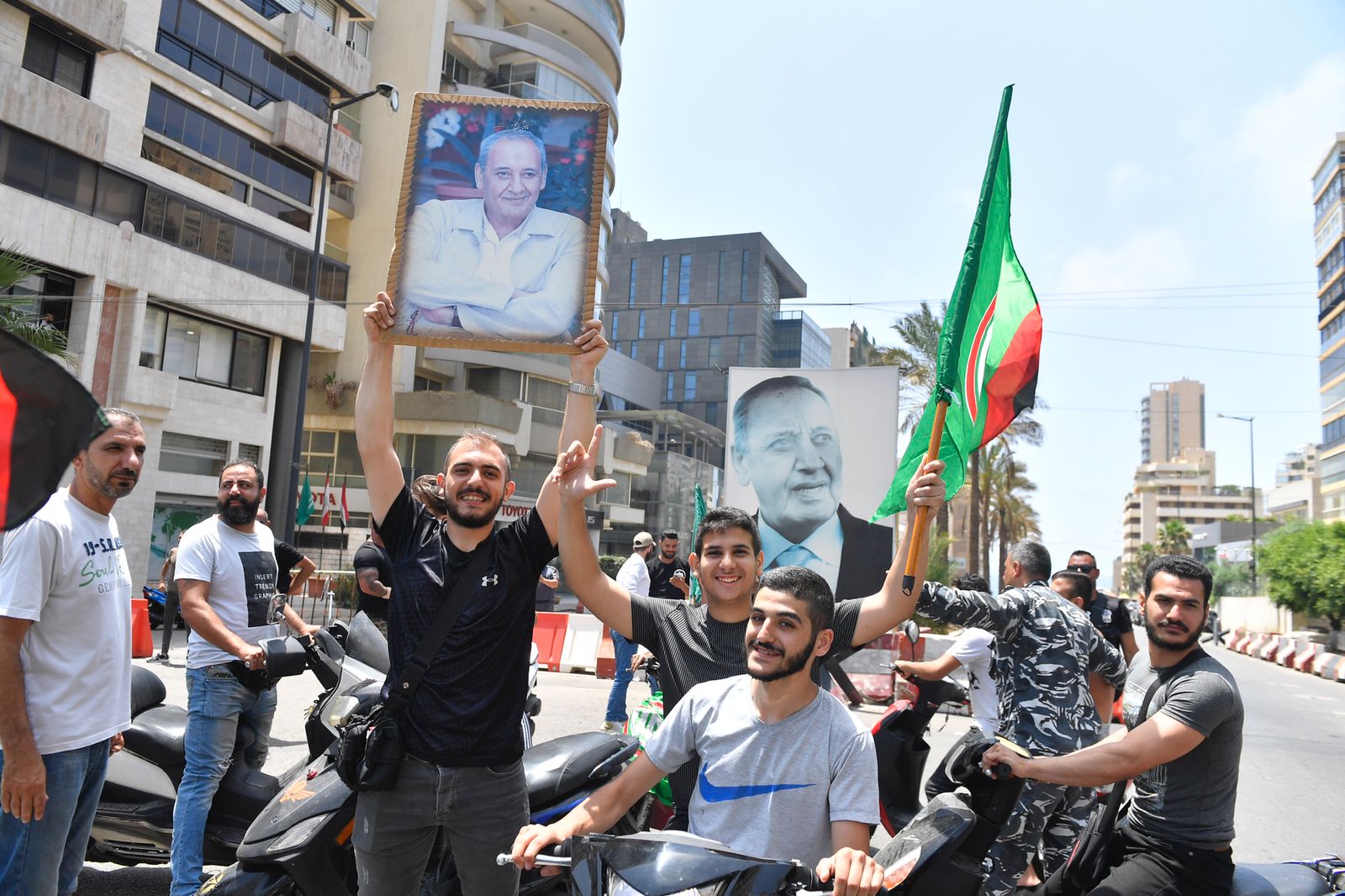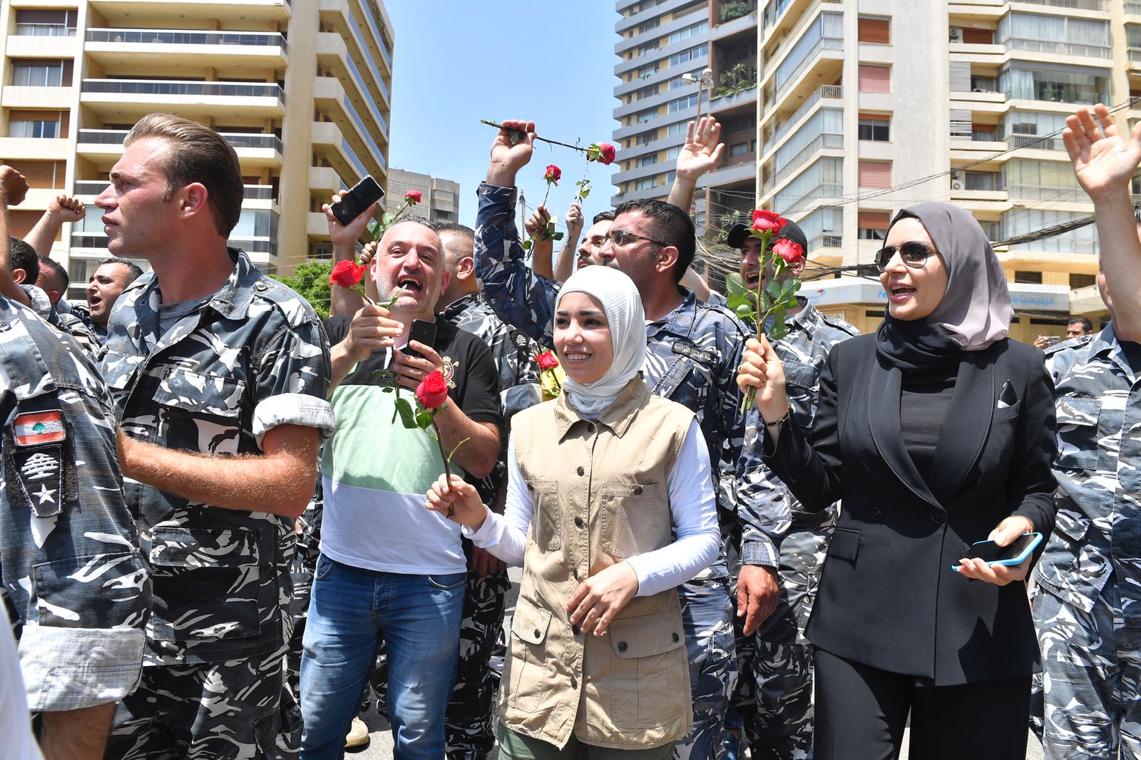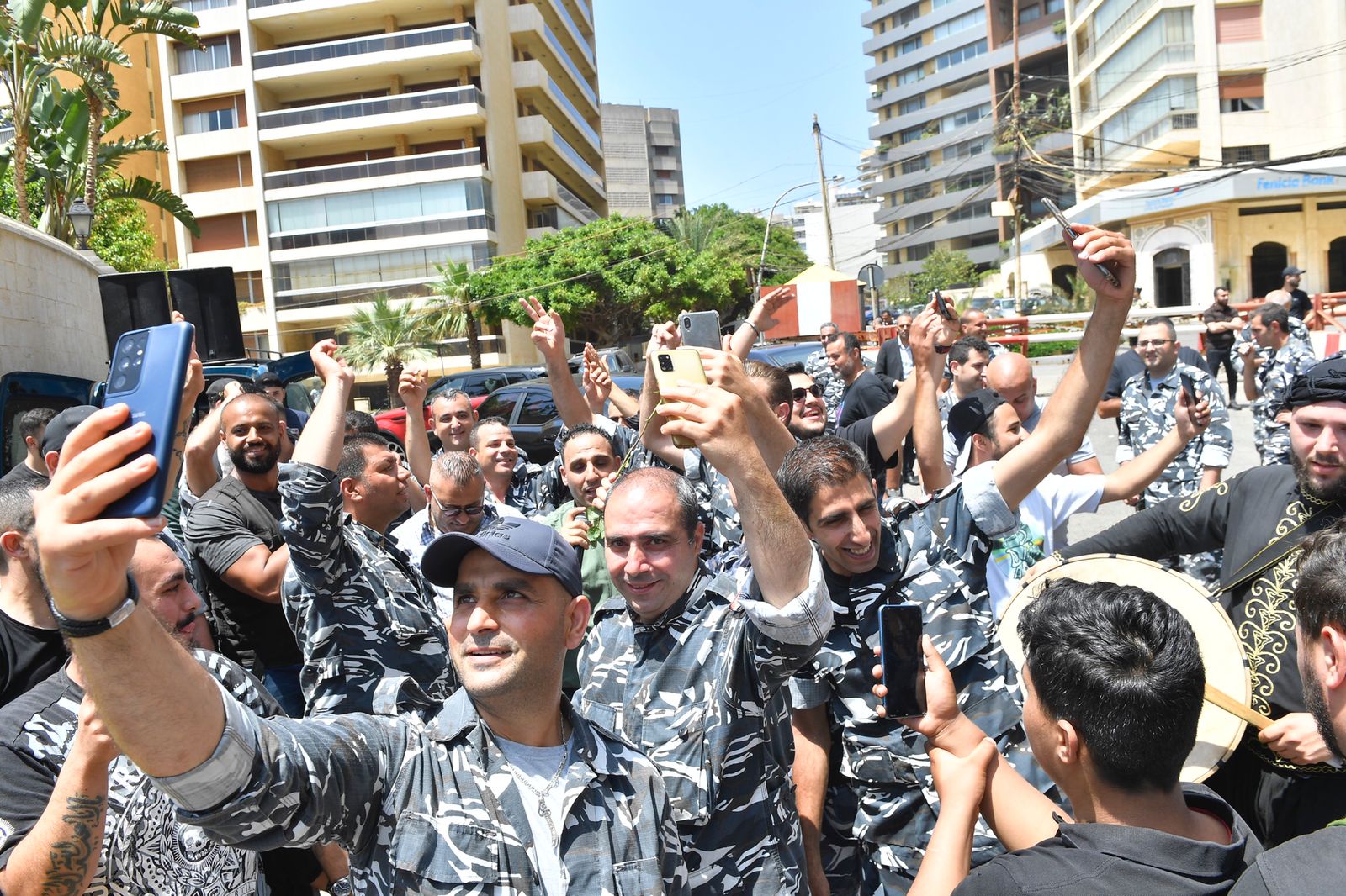 عناصر من شرطة عين التينة تحتفل بنجاح الرئيس بري