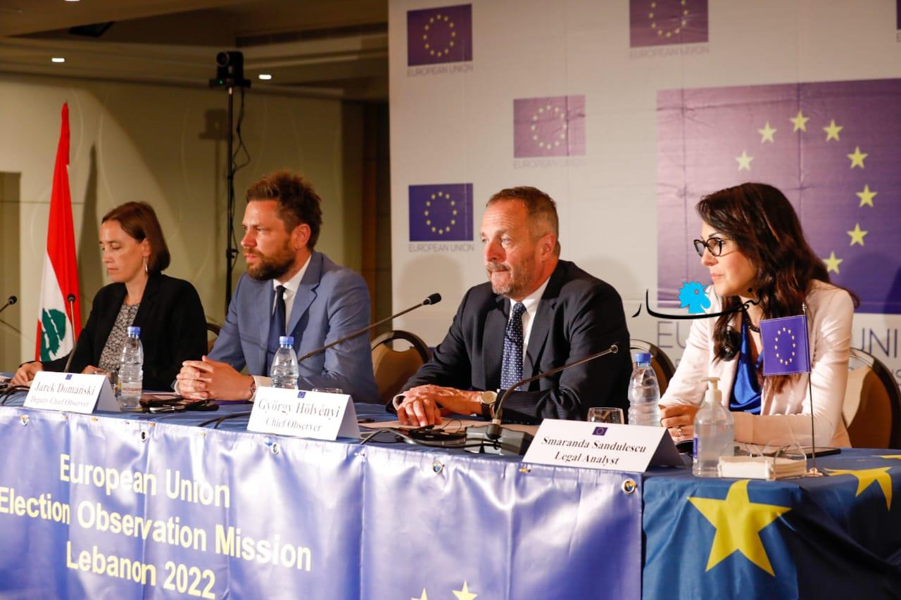 عقد رئيس بعثة الإتحاد الأوروبي لمراقبة الإنتخابات جورج هولفيني مؤتمراً صحافياً لتقديم التقرير النهائي للبعثة حول الانتخابات النيابية، ويتضمن 23 توصية لتحسين العملية الإنتخابية في المستقبل. في فندق الموفنبك- Mistral- في قاعة المؤتمرات.