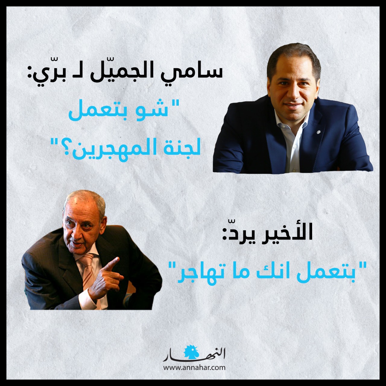 وأجاب برّي على الجميّل بالقول: "بتعمل إنك ما تهاجر".