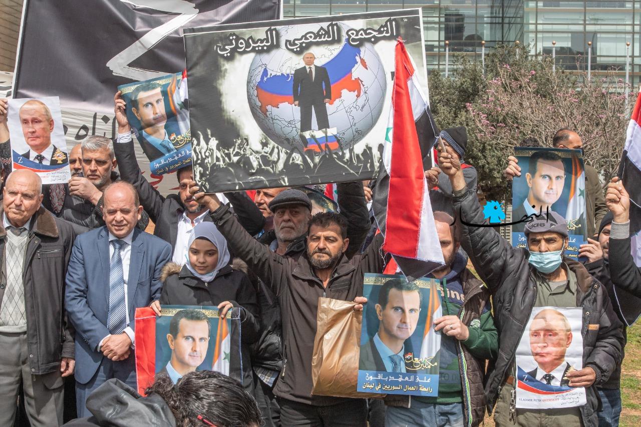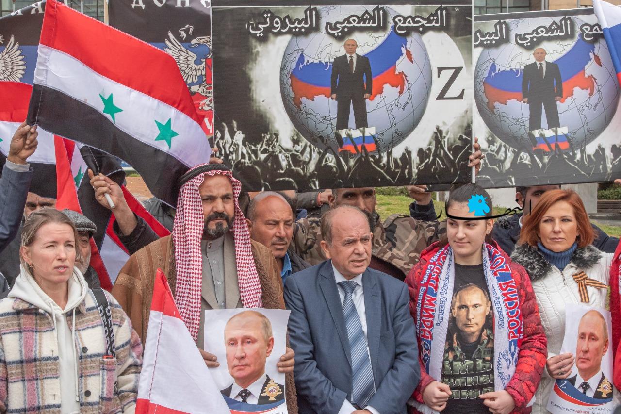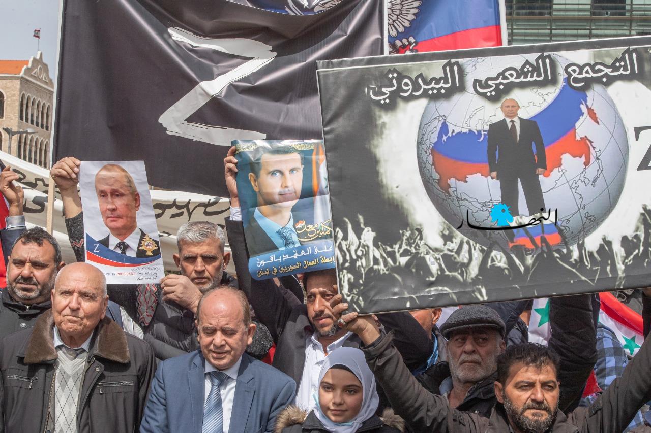 نظّم عدد من أعضاء الجالية الروسية وتجمّع العمّال السوريين في لبنان إلى جانب "التجمّع الشعبي البيروتي" وقفة تضامنية ظهر الأحد، مع الرئيس الروسي فلاديمير بوتين دعماً لموسكو في حربها بمواجهة أوكرانيا، أمام مركز "الإسكوا".