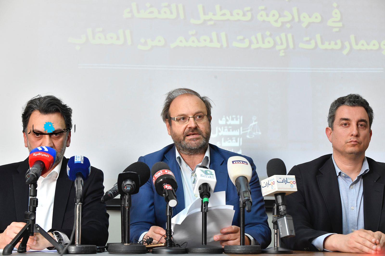 من المؤتمر الصحافي لـ"ائتلاف استقلال القضاء" (حسام شبارو).