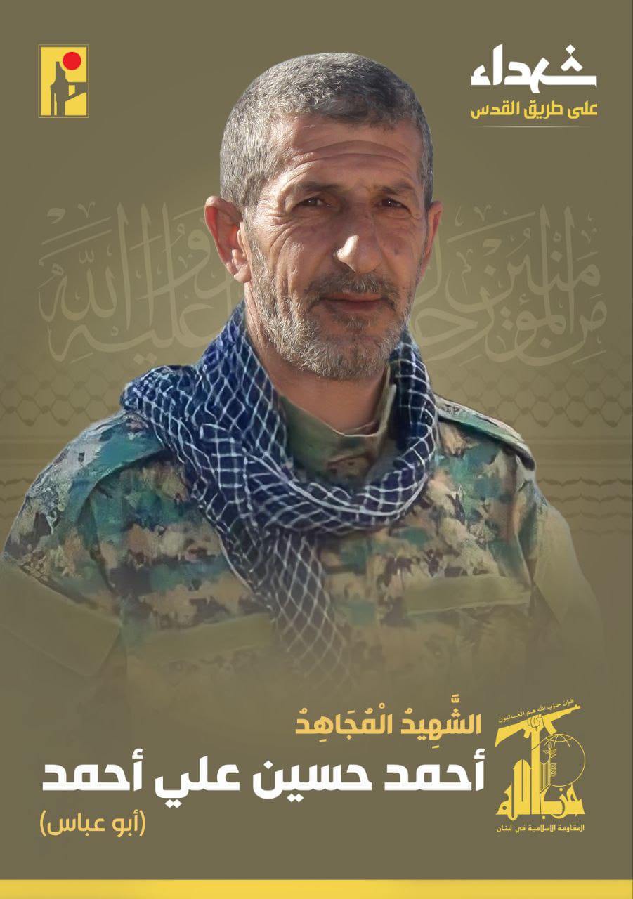 وفي سياق متصل، نعى "حزب الله" أحد عناصره أحمد حسين علي أحمد "أبو عباس" من بلدة الناصرية في البقاع.