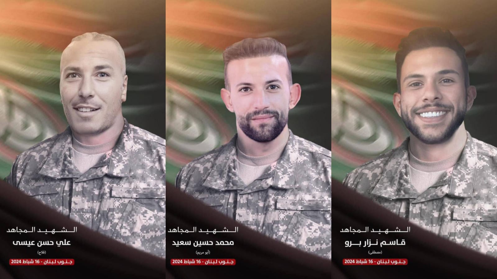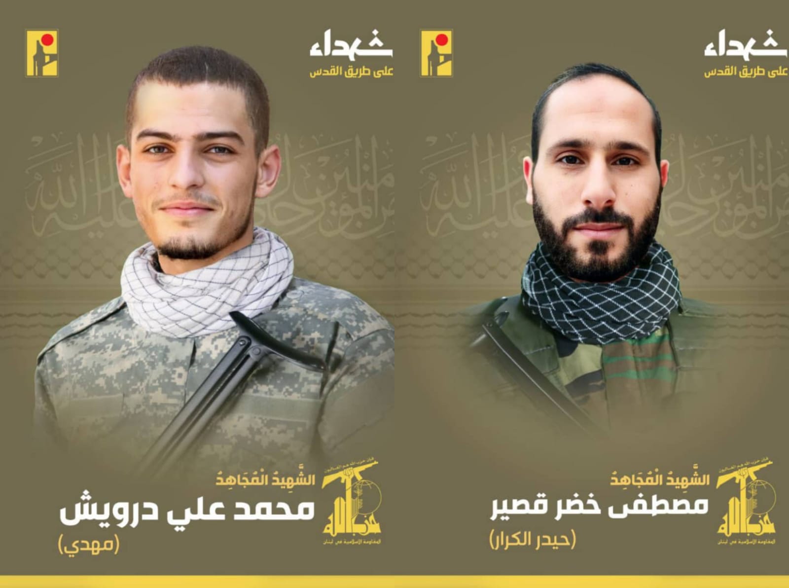 من جهته، نعى "حزب الله" اثنَين من عناصره هما محمد علي درويش "مهدي" مواليد عام 1995 من بلدة صربين، ومصطفى خضر قصير "حيدر الكرار" مواليد عام 1991 من بلدة دير قانون النهر.