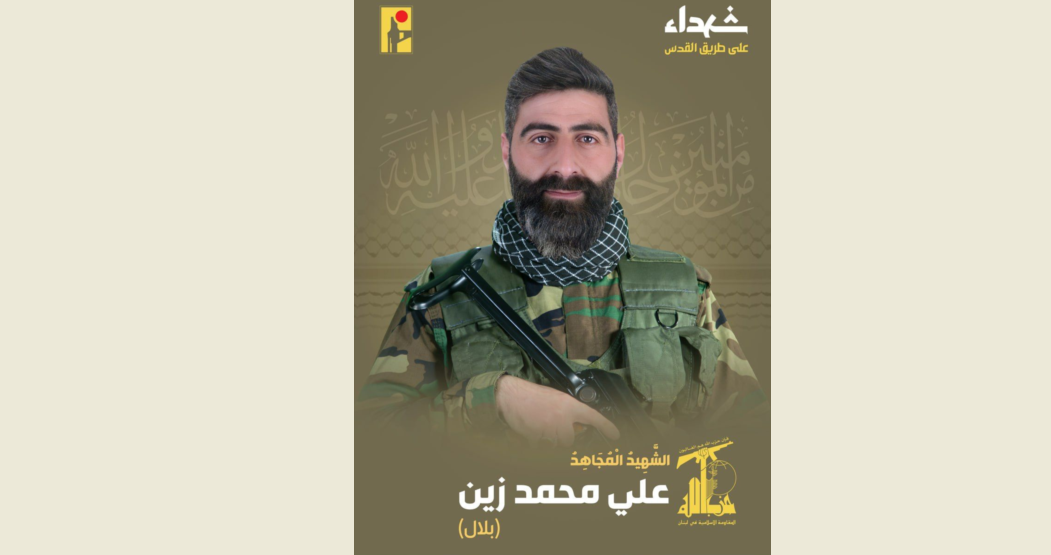 الى ذلك نعى "حزب الله" أحد عناصره، علي محمد زين "بلال" مواليد عام 1991 من بلدة سحمر في البقاع الغربي.