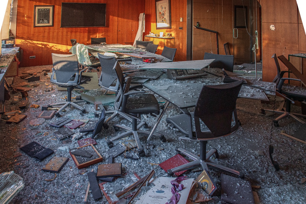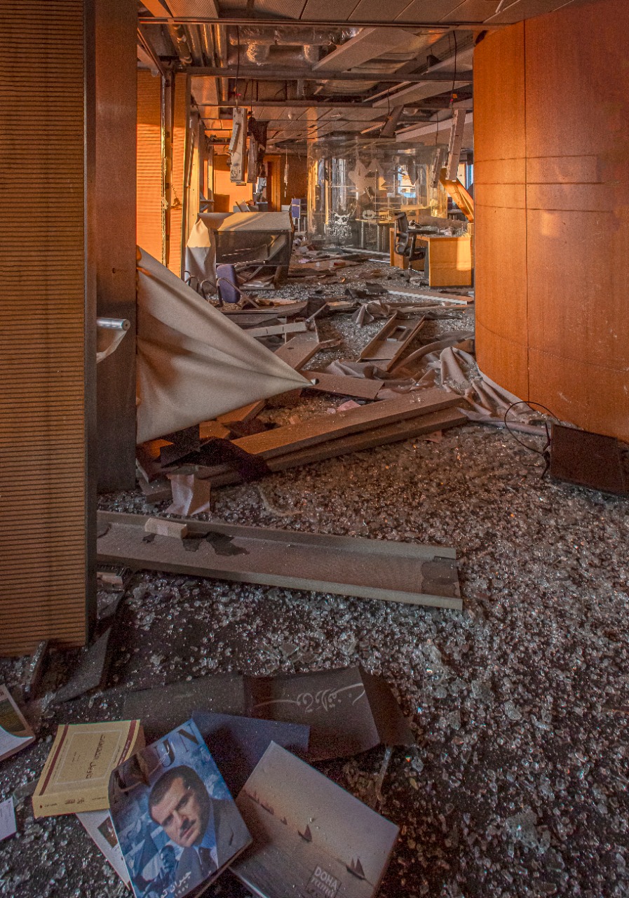 عاصفة من الزجاج والغبار والركام تحجب كلّ شيء. مكاتب الموقع العربي الذي احتفينا به ظهراً دمرت، ومعها مكاتب التحرير والادارة والستوديو والأرشيف.