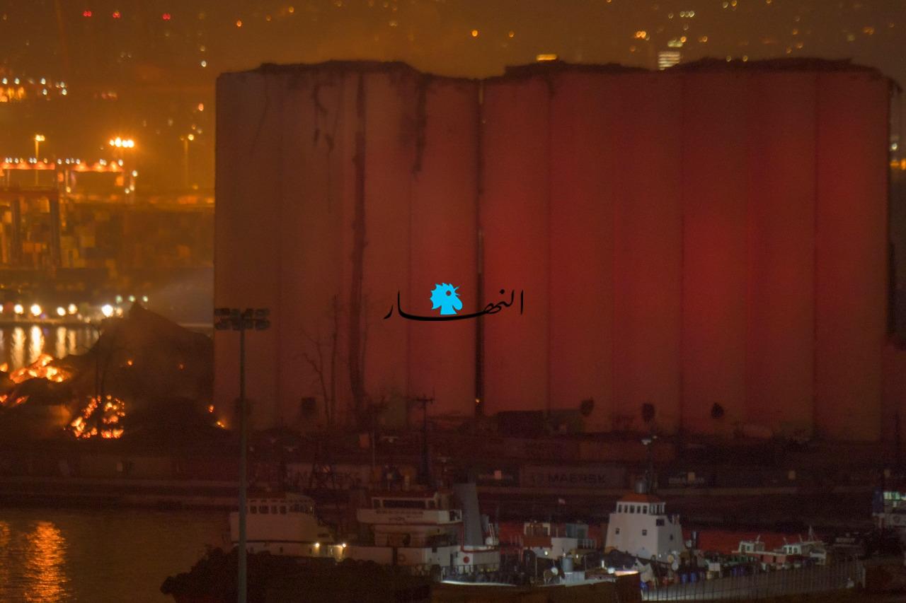 ضوء أحمر يبدو على أهراء مرفأ بيروت (نبيل اسماعيل).