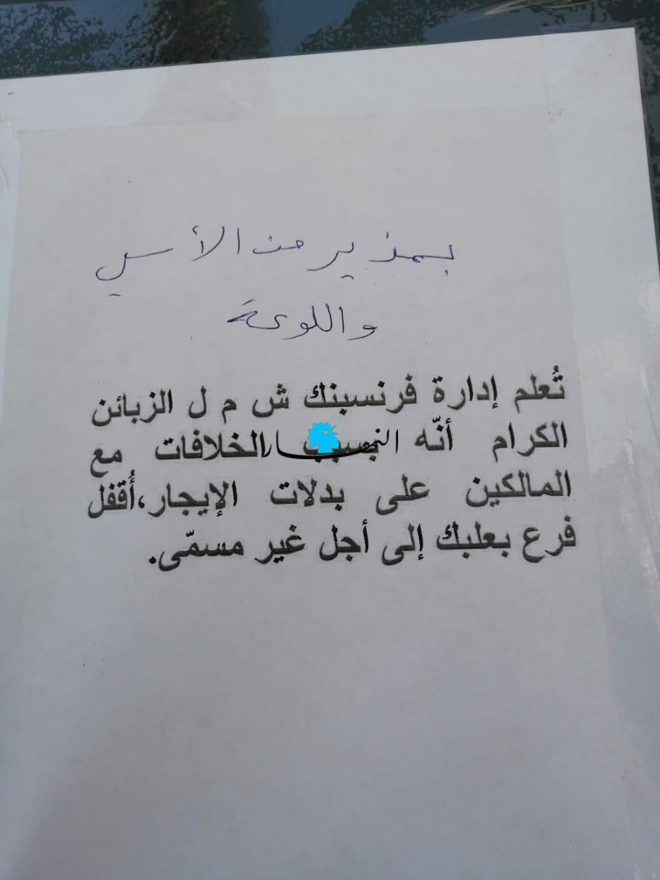 وسادت حالة من الاستياء لدى عملاء المصرف بسبب عدم قدرتهم على سحب رواتبهم عبر الصراف الآلي، خصوصاً أفراد الأجهزة الأمنية، وقد علّق المصرف لافتة على أبوابه ذكر فيها: "تُعلِم إدارة (فرنسبنك) الزبائن الكرام أنّه بسبب الخلافات مع المالكين على بدلات الإيجار، أُقفِل فرع بعلبك إلى أجل غير مسمّى".