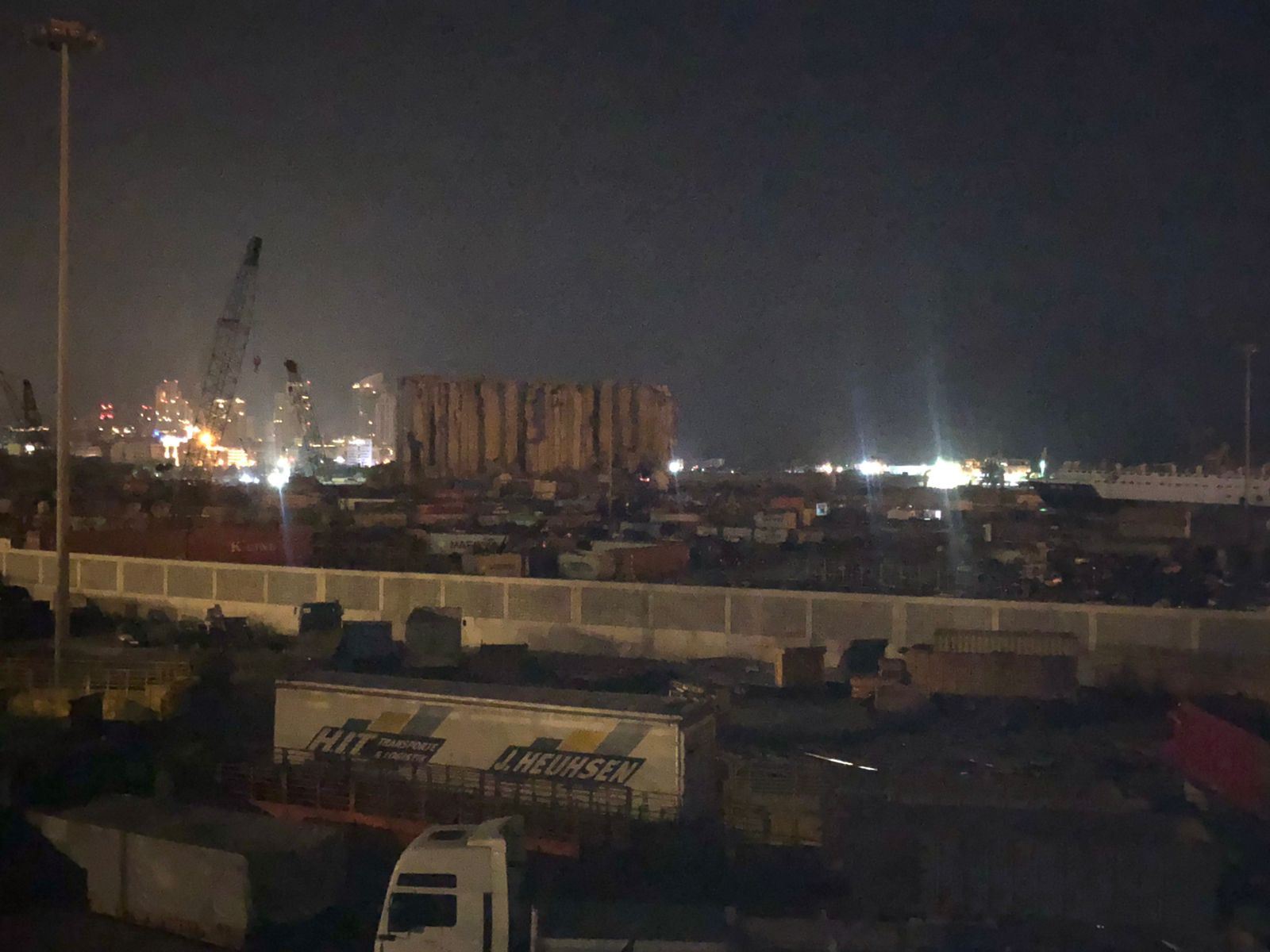 أهراءات القمح في مرفأ بيروت كما بدت مساء اليوم (نبيل اسماعيل).